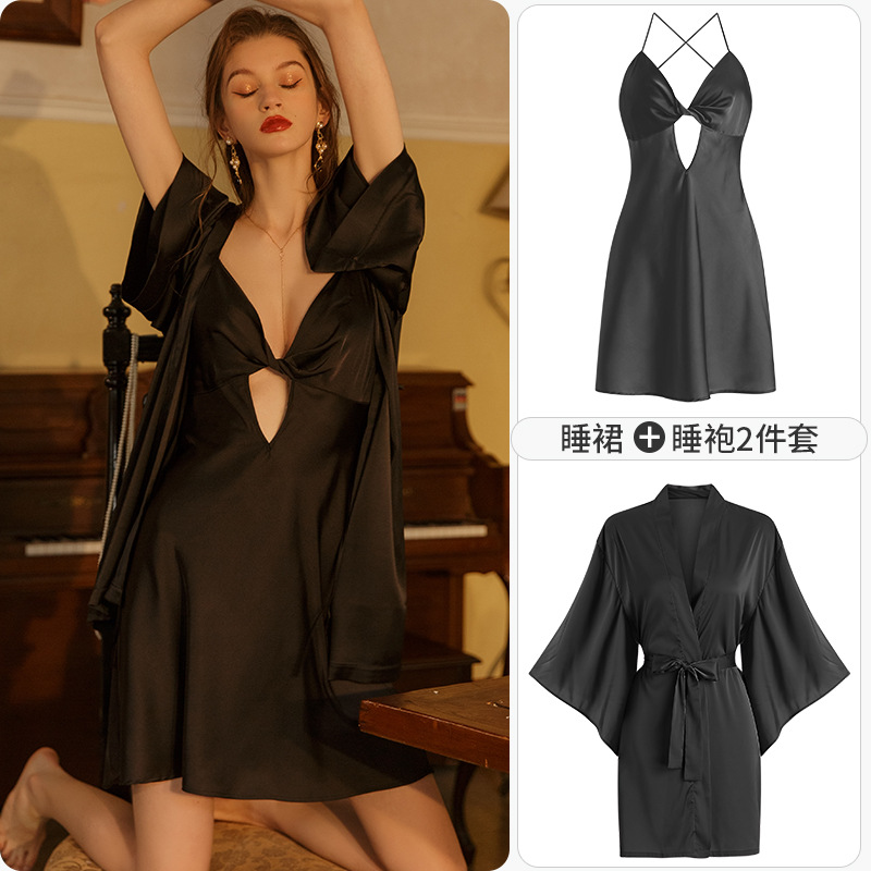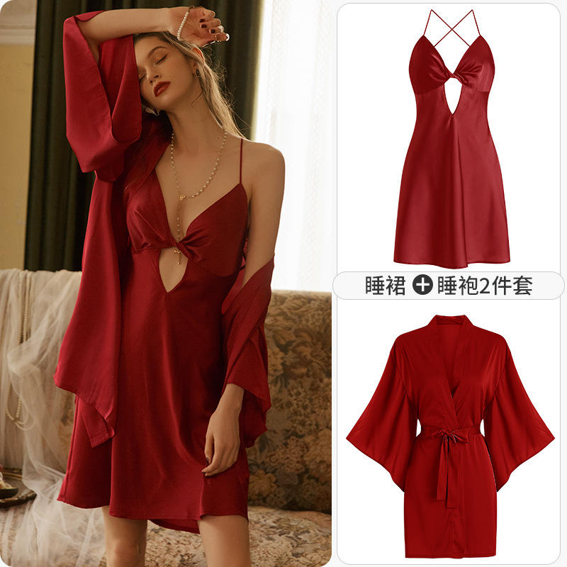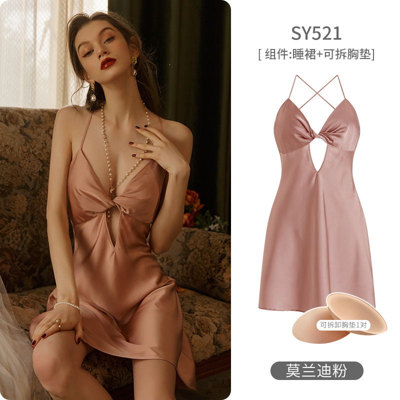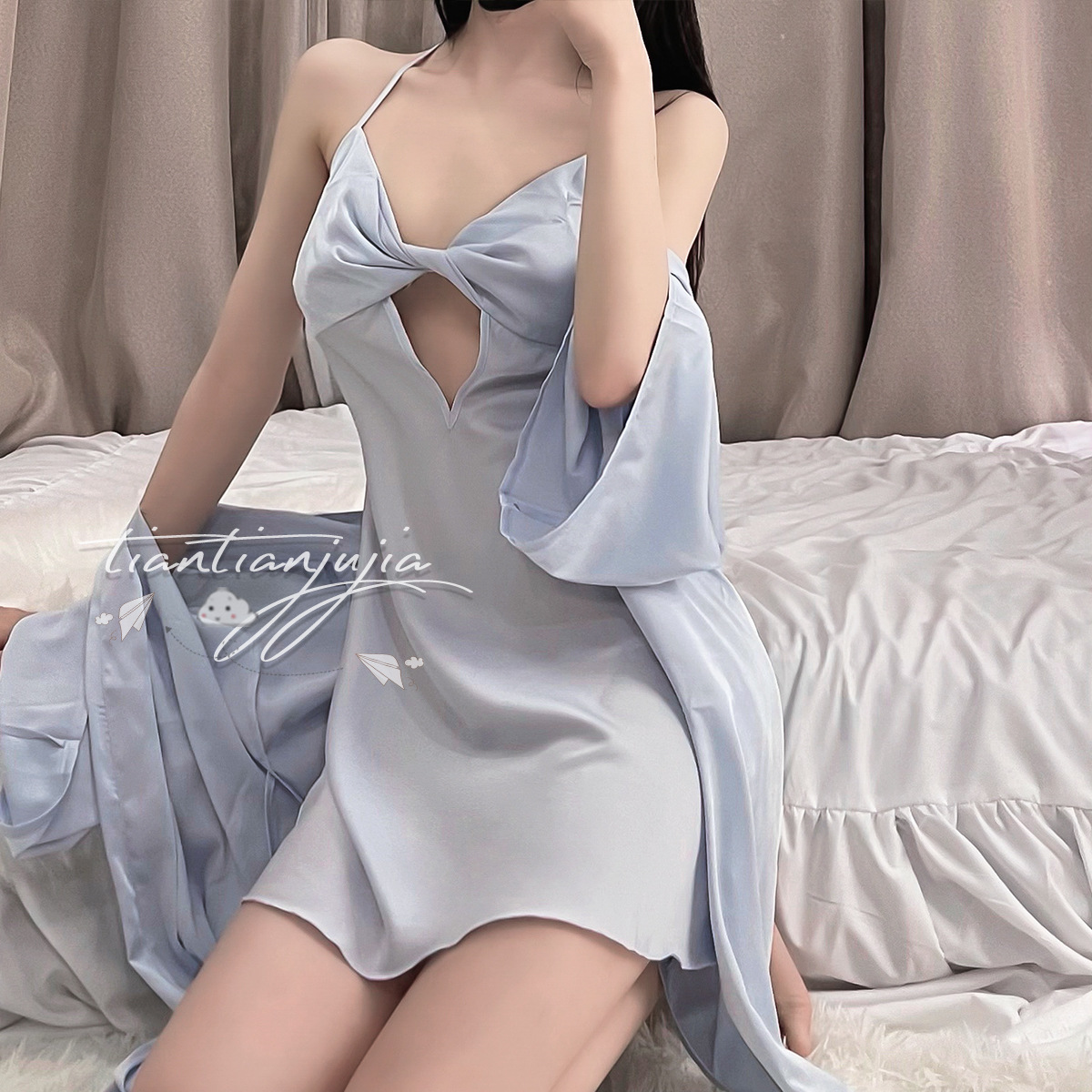 여성을위한 섹시한 잠옷 아이스 리본 유방 패드 얇은 2025 새로운 순수한 욕망 하이 엔드 유혹 서스펜더 잠옷 투피스 세트