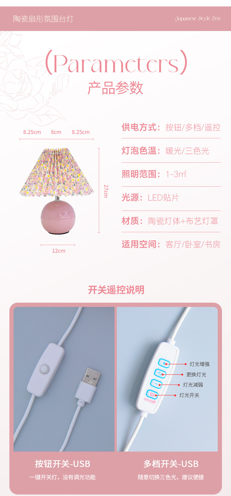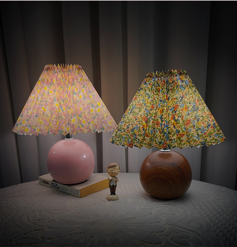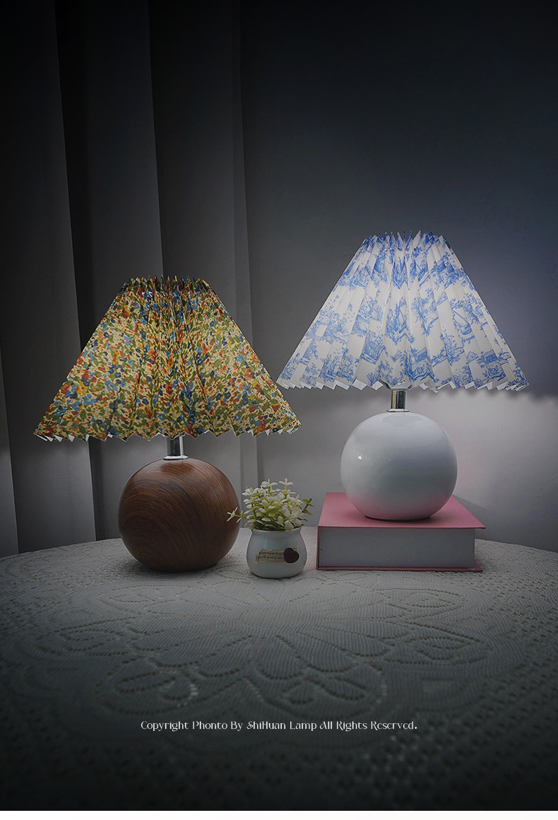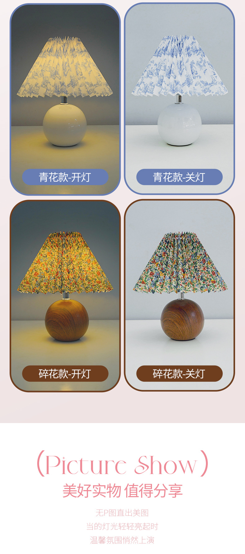 북유럽 레트로 세라믹 테이블 램프 주름진 침실 침대 옆 램프 고급스러운 나무 무늬 인테리어 분위기 조명