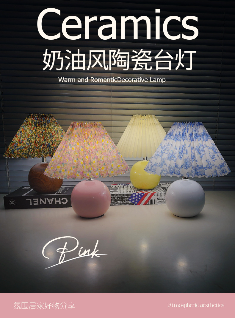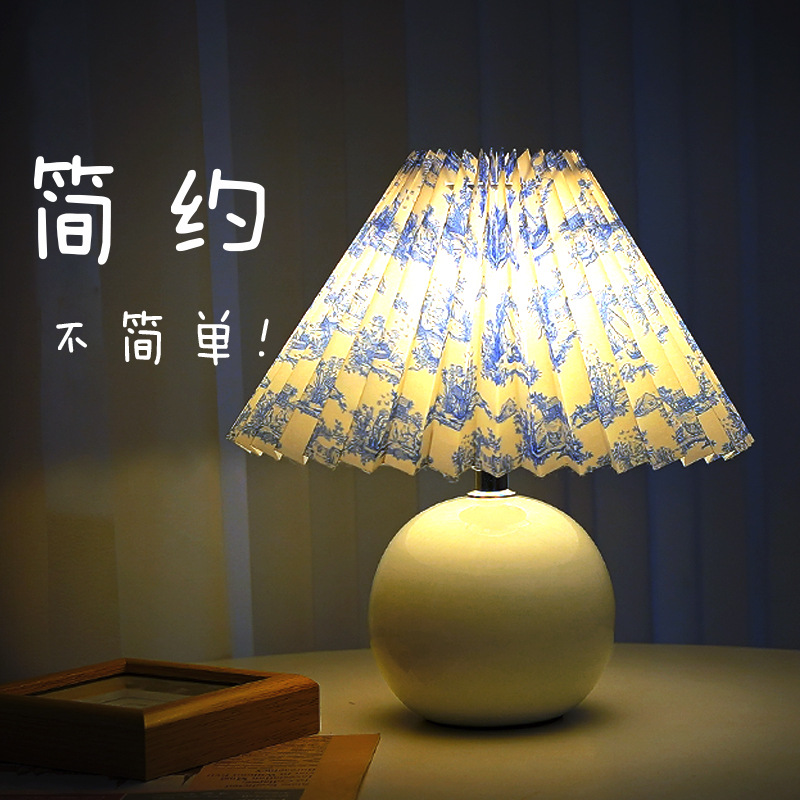 북유럽 레트로 세라믹 테이블 램프 주름진 침실 침대 옆 램프 고급스러운 나무 무늬 인테리어 분위기 조명스토어 가기