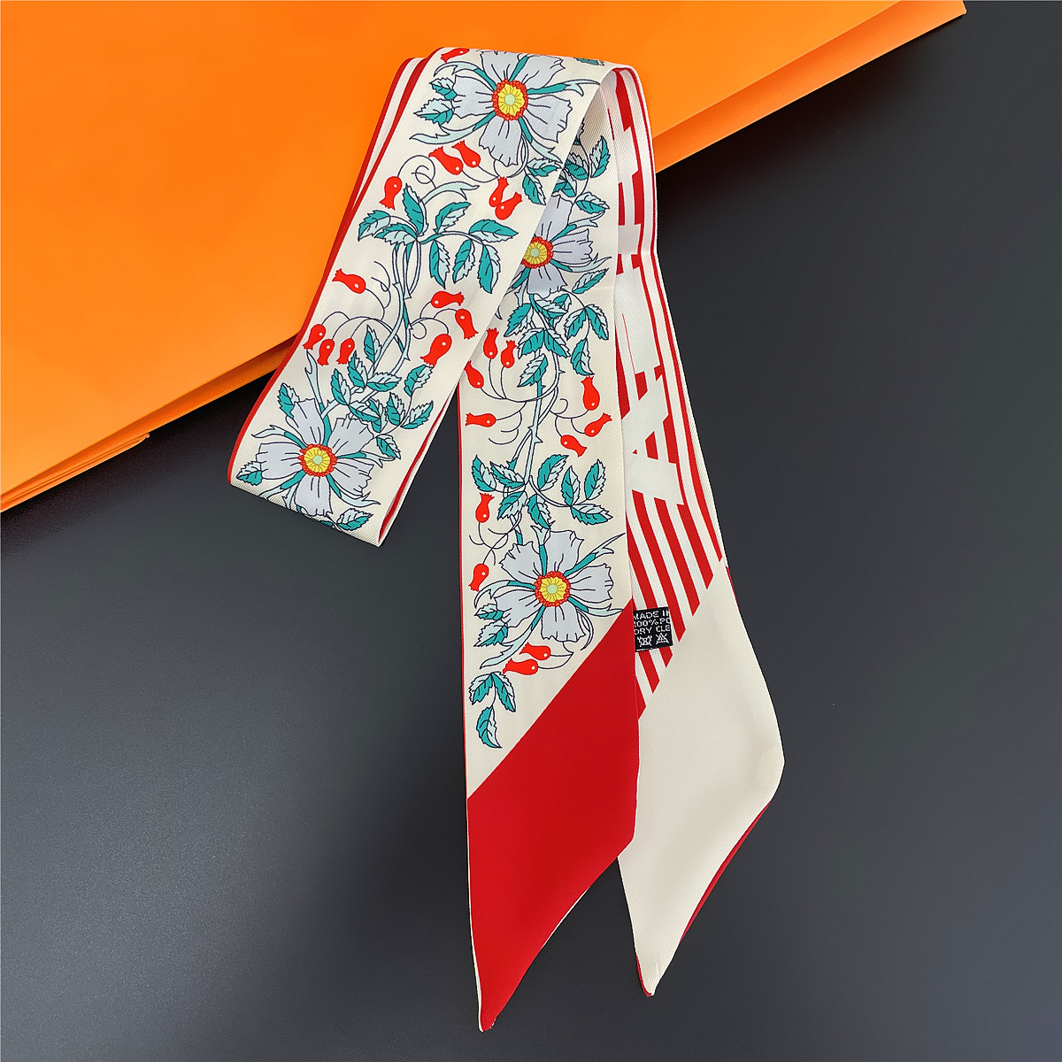 새로운 실크 실크 스카프 도매 능직 실크 디지털 인쇄 손 선물 스카프가있는 여성용 헤어 베벨 스카프 모든 매치스토어 가기