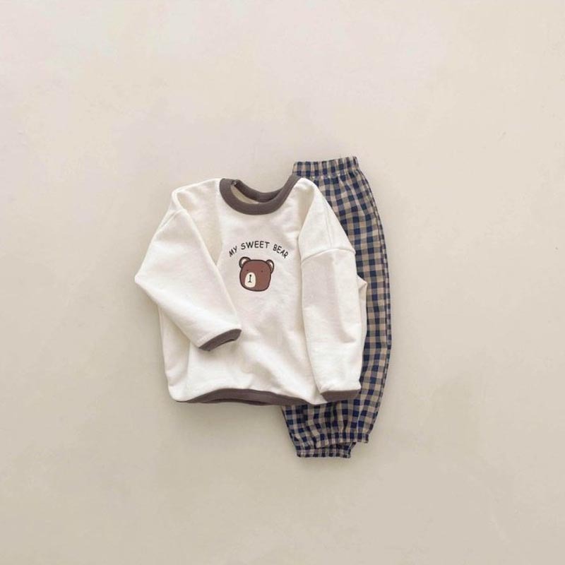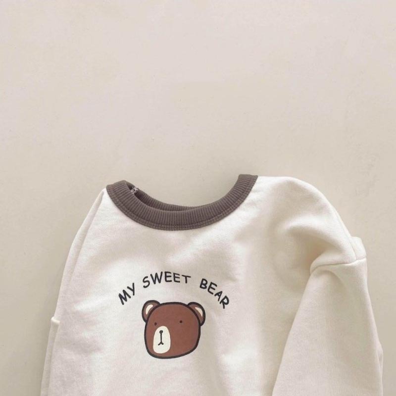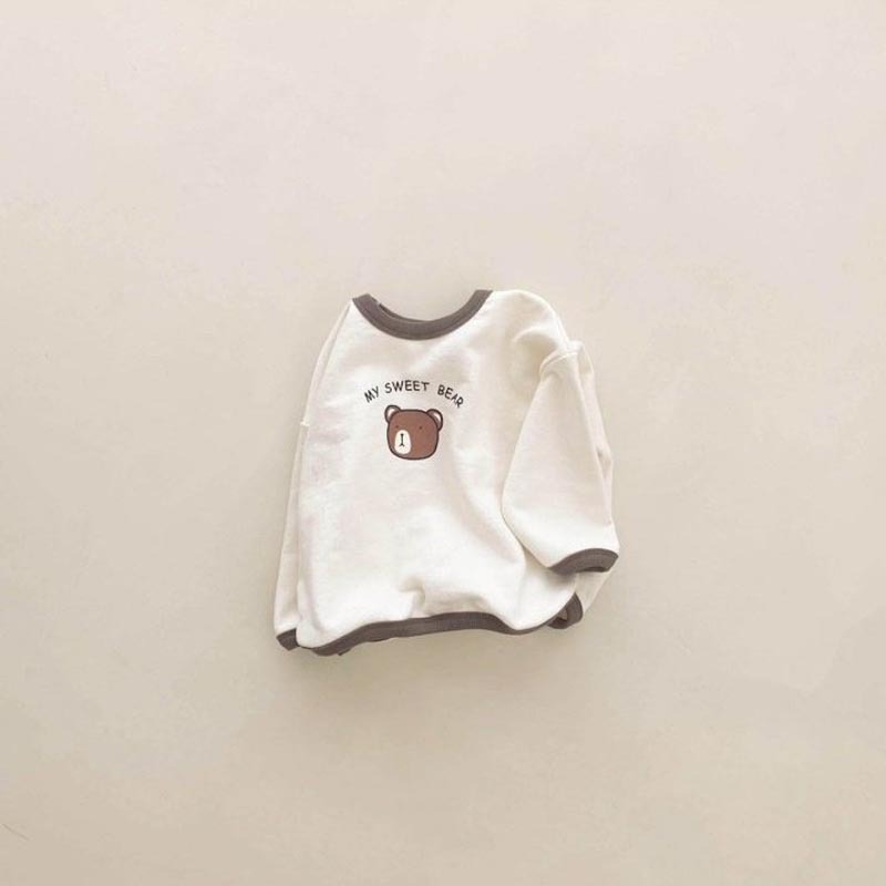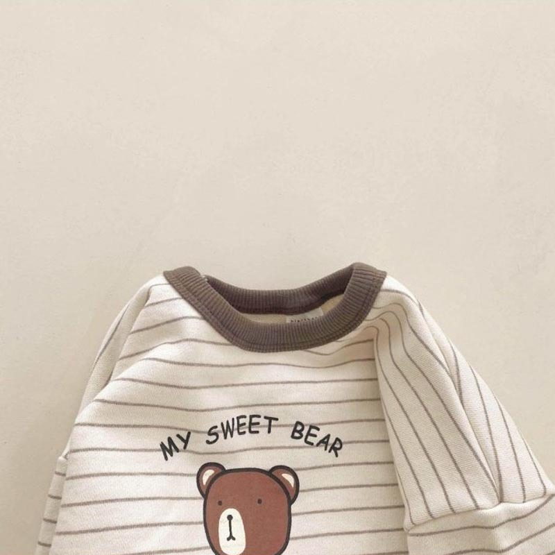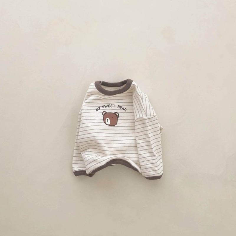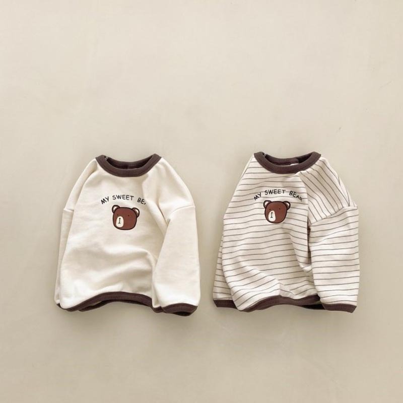 In 한국 아동복 봄과 가을 곰 인쇄 캐주얼 느슨한 신생아 유아 스트라이프 긴 소매 풀오버 티셔츠