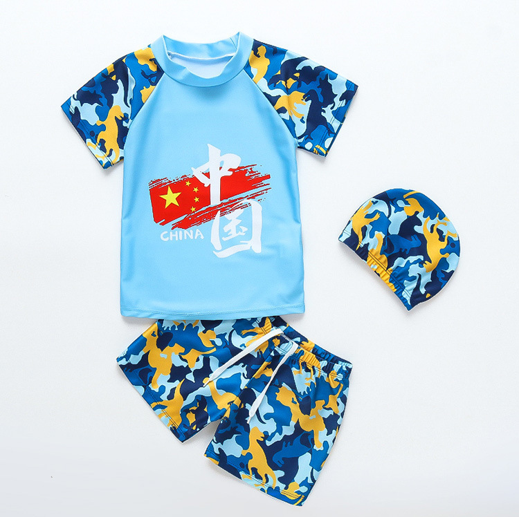 어린이 수영복 소년 2022 새로운 폴리에스터 패션 분할 중국 수영 세트 소년을위한 어린이 수영복
