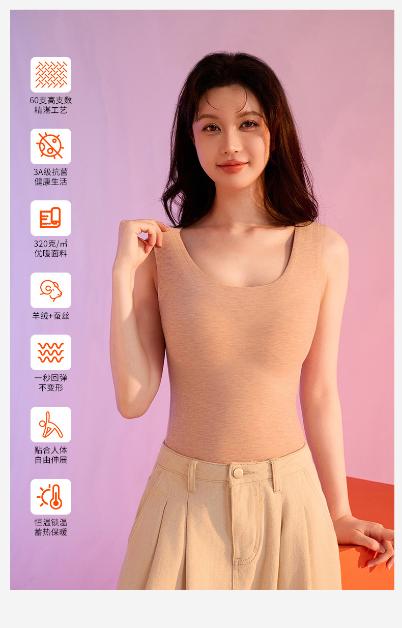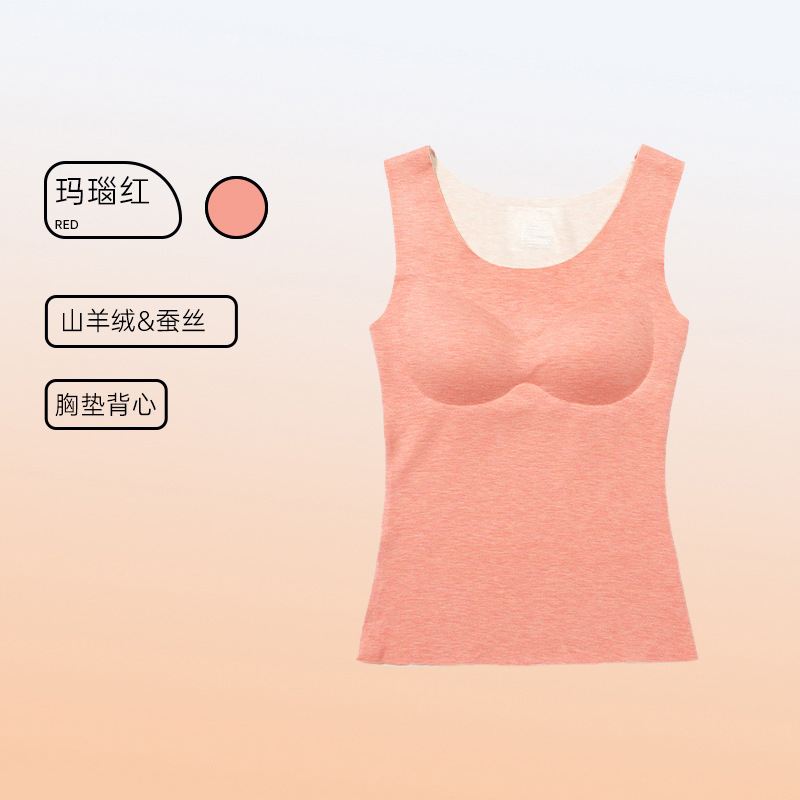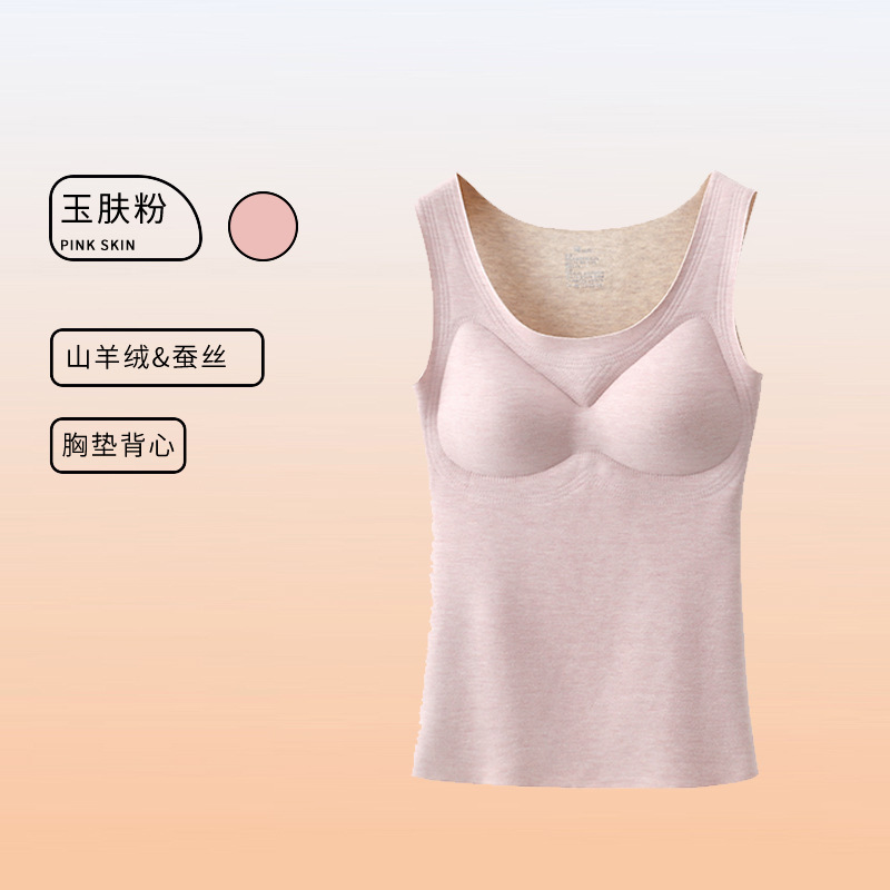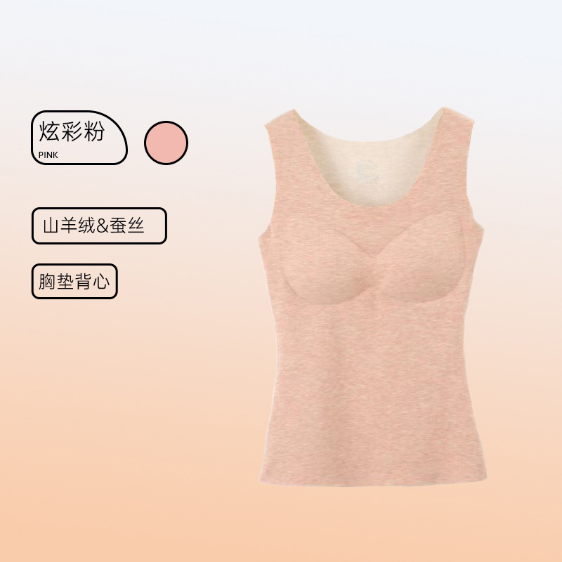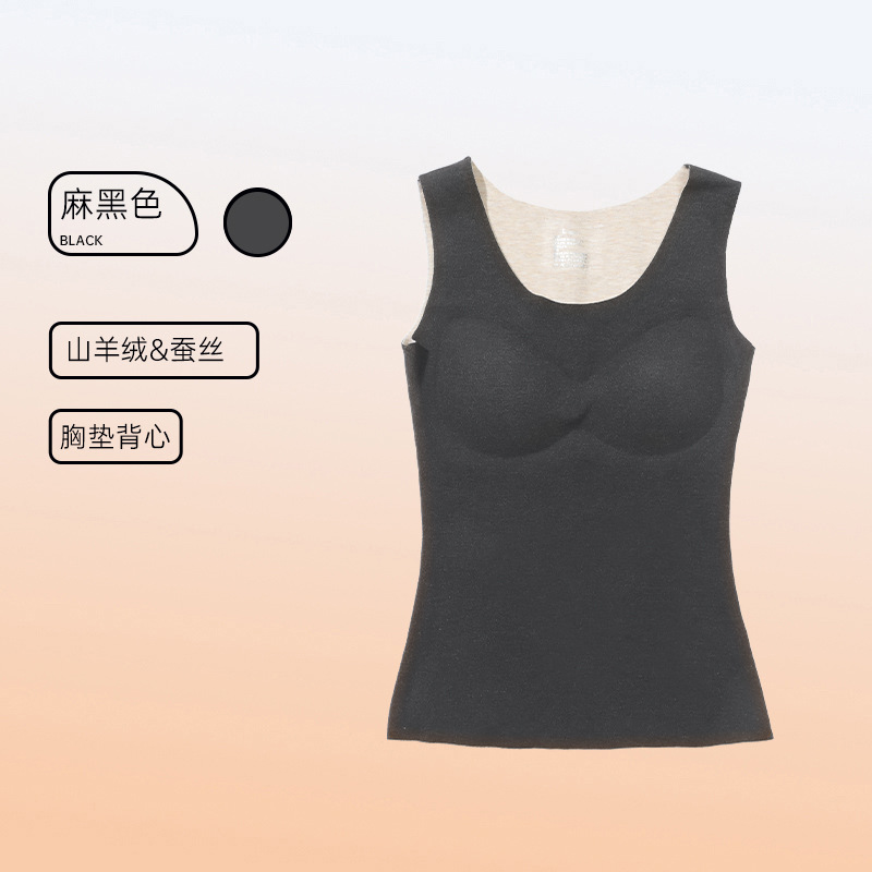 가을과 겨울 따뜻한 의류 캐시미어 실크 열 속옷 열 조끼 여성 가슴 패드 드 벨벳 열 원활한 가을 의류 여성