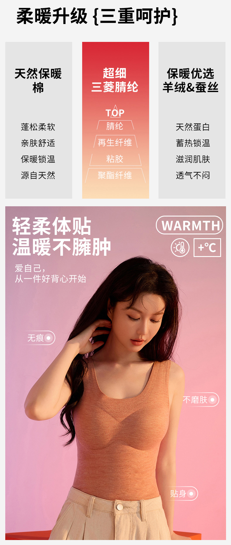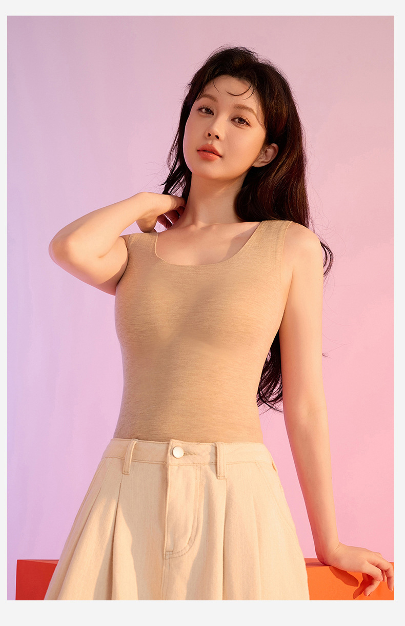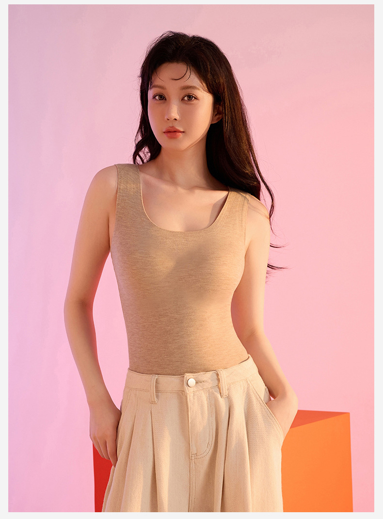 가을과 겨울 따뜻한 의류 캐시미어 실크 열 속옷 열 조끼 여성 가슴 패드 드 벨벳 열 원활한 가을 의류 여성