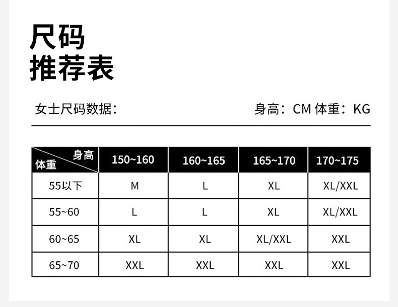 • 여성 XXL (권장 70-77.5kg )