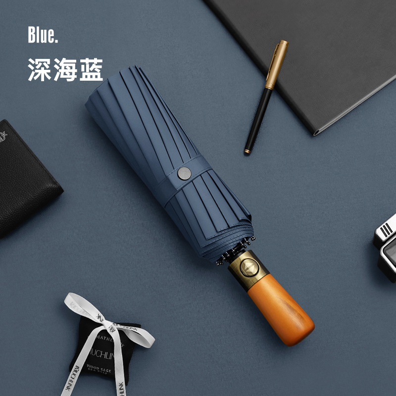 왼쪽 완전 자동 16 본 우산 남성용 이중 목적 맑고 비오는 접이식 우산 대형 3 중 비즈니스 광고 우산
