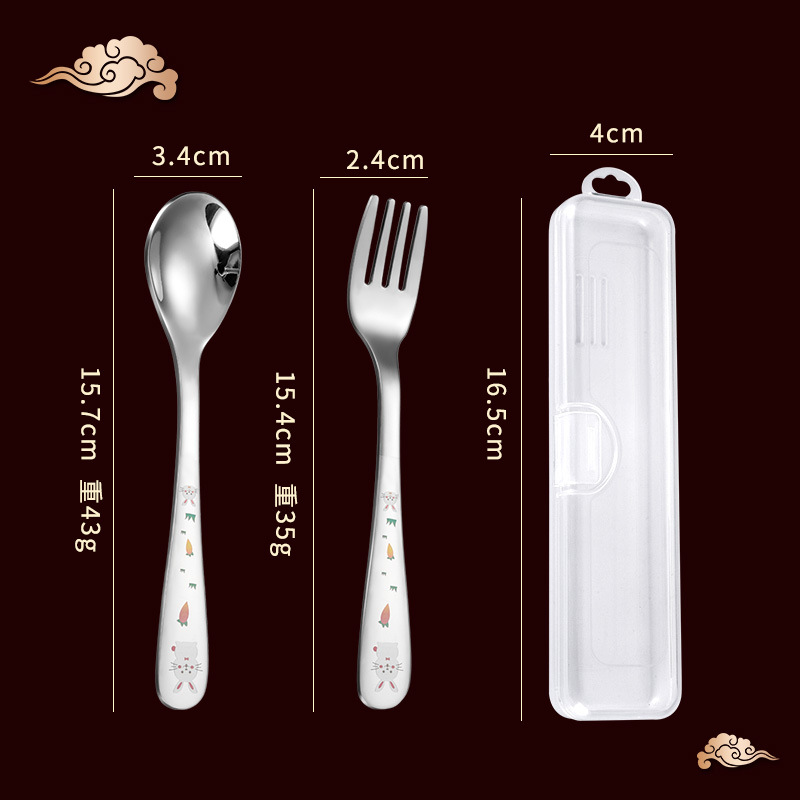 304 스테인레스 스틸 어린이 숟가락 식기 세트 창조적 인 만화 먹이 숟가락 휴대용 아기 먹는 숟가락 포크스토어 가기