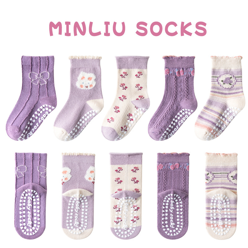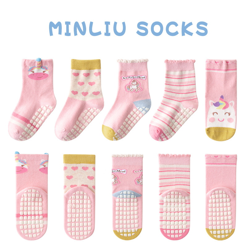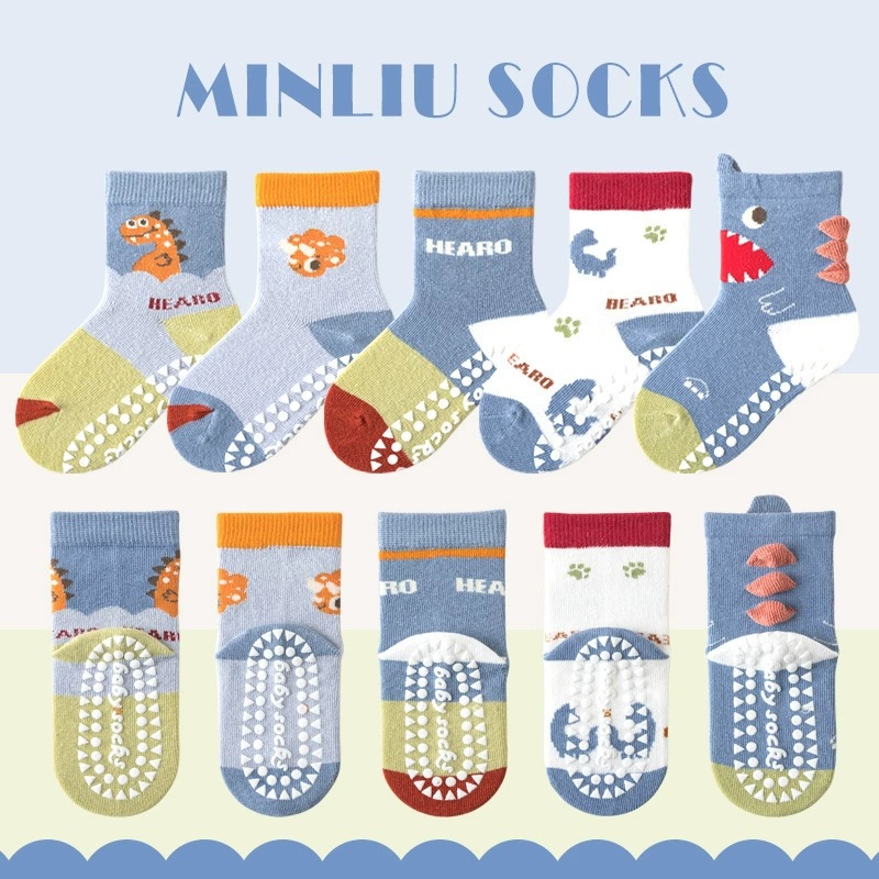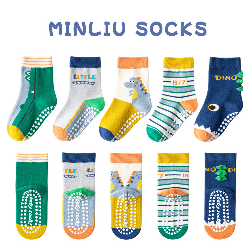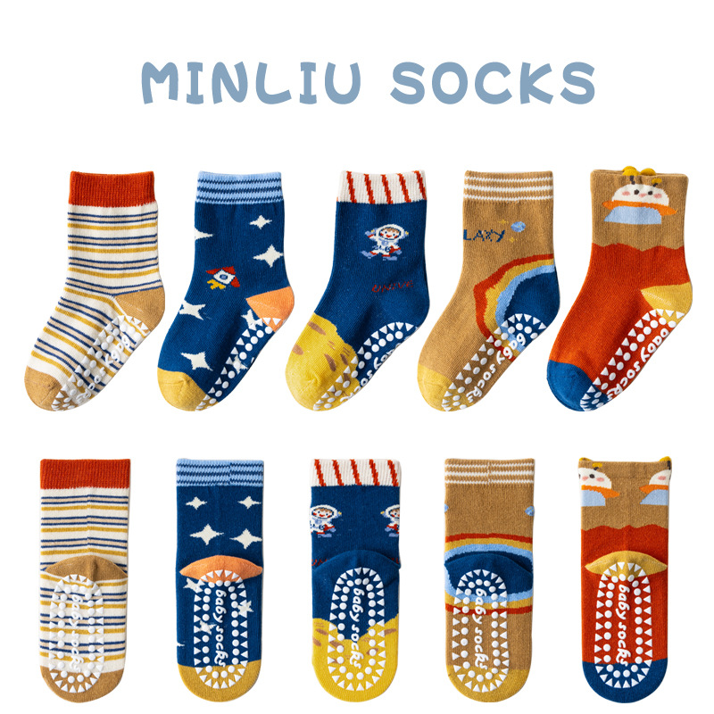 봄과 가을 어린이 양말 분배 트램폴린 아기면 양말 1-12 세 중간 및 대형 어린이 튜브 양말 만화 소년 미끄럼 방지 양말스토어 가기