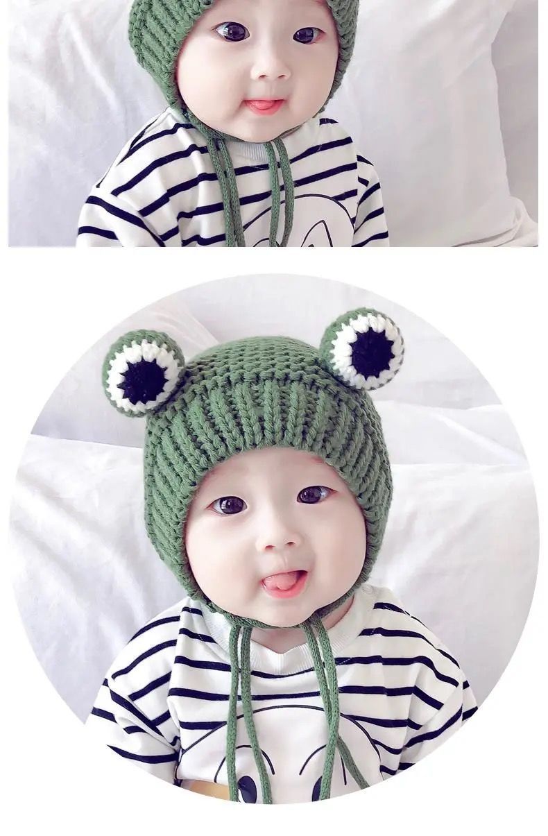 아기 모자 가을 겨울 3-6-12개월 여자 아기 모직 모자 겨울 매우 귀여운 어린이 귀 보호 모자 남자 만화스토어 가기