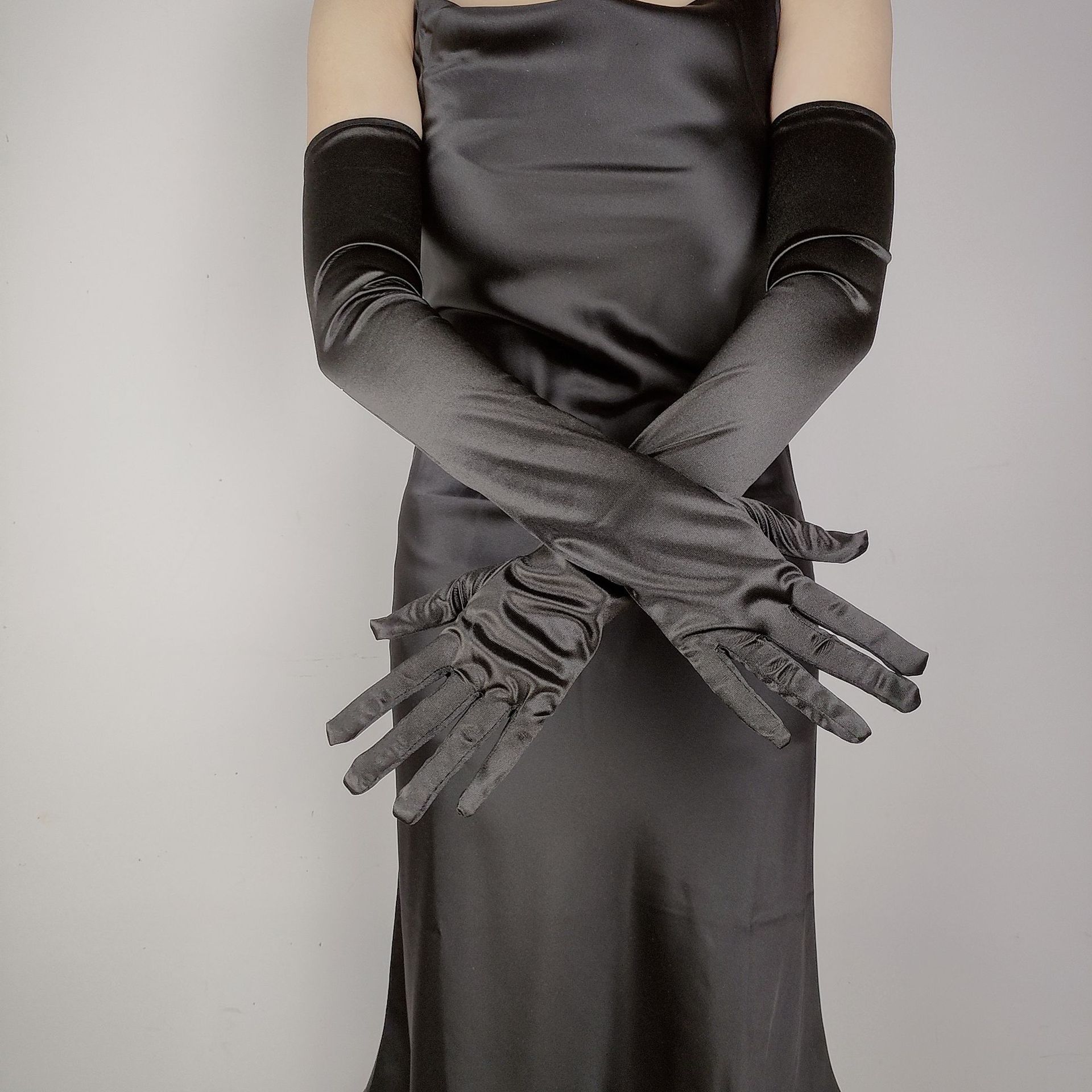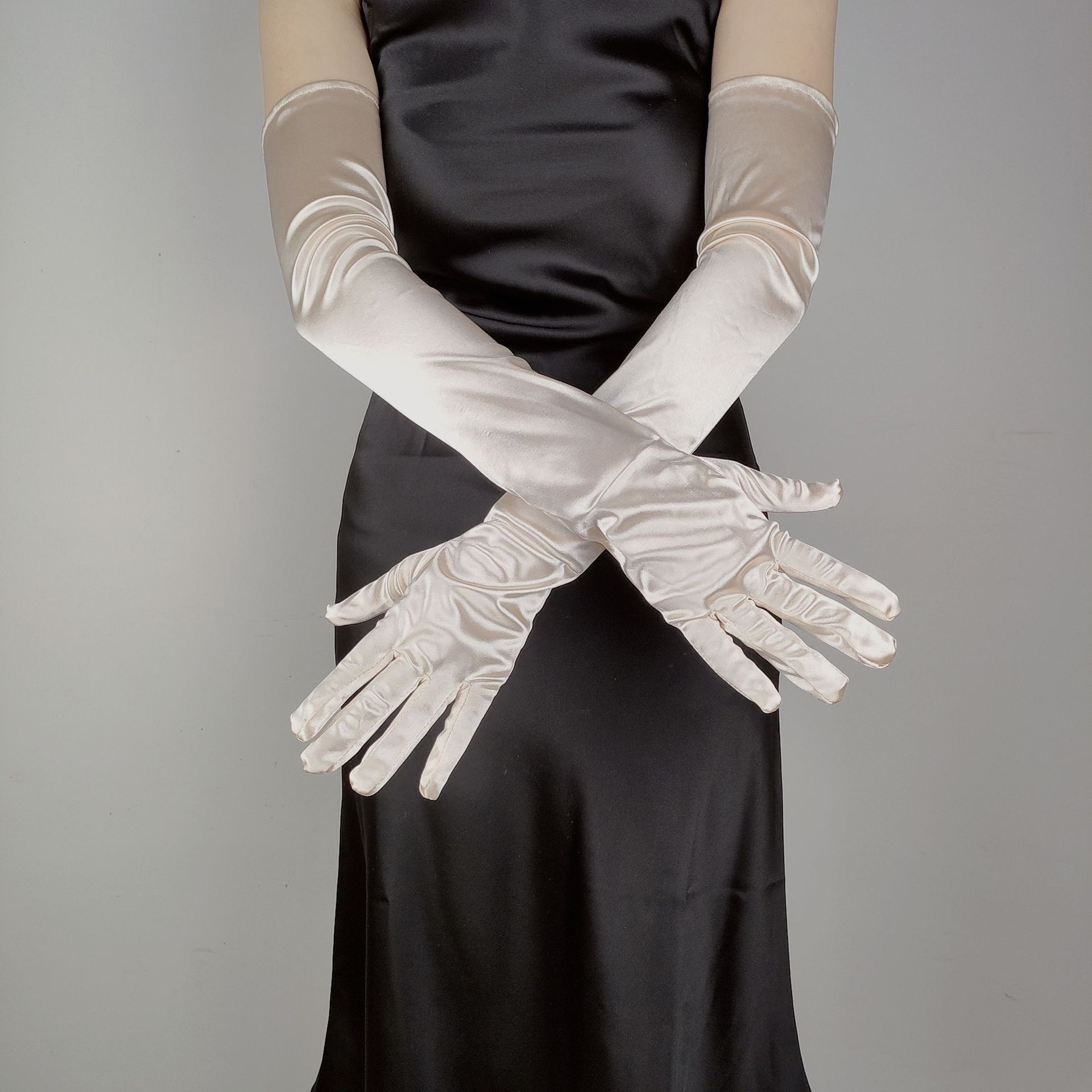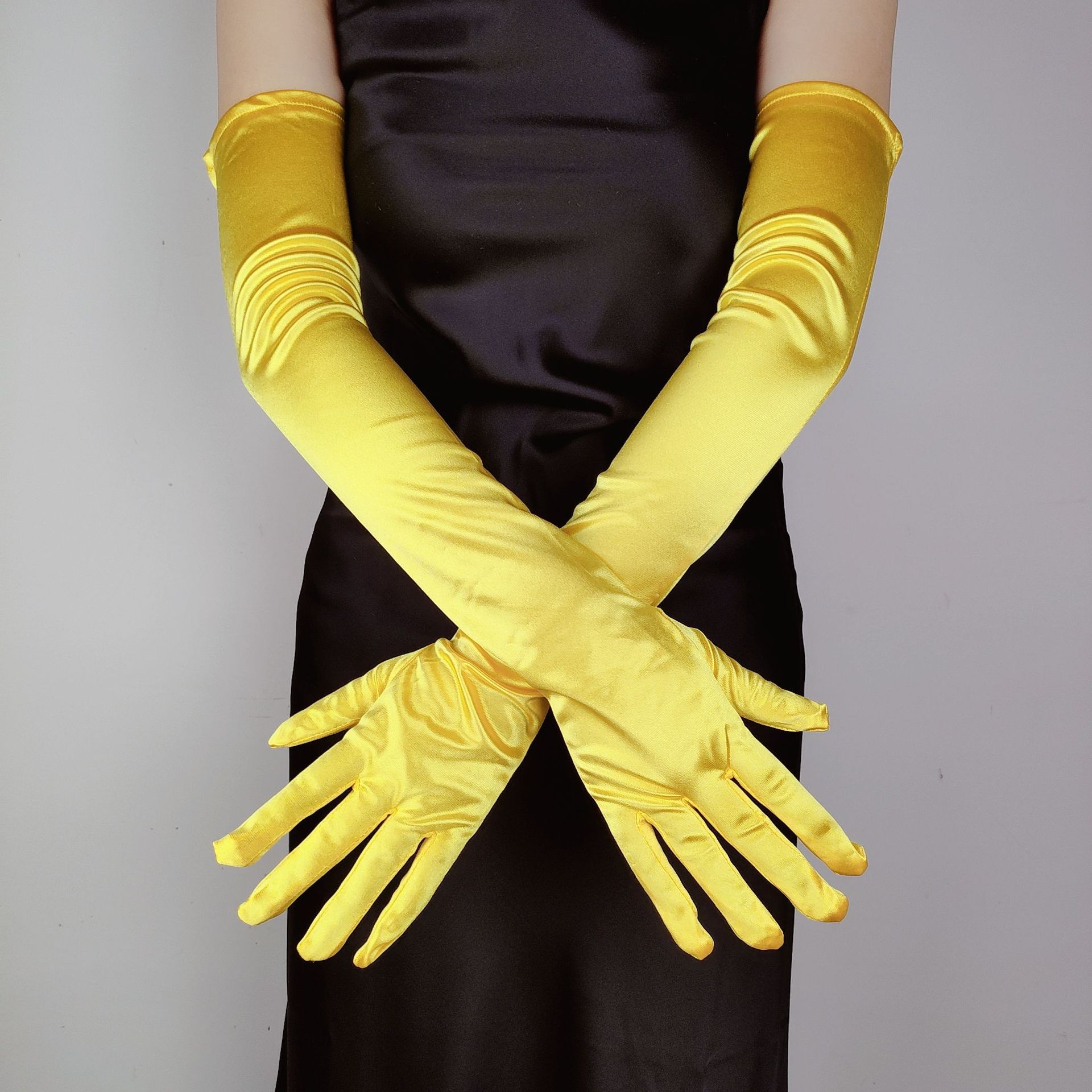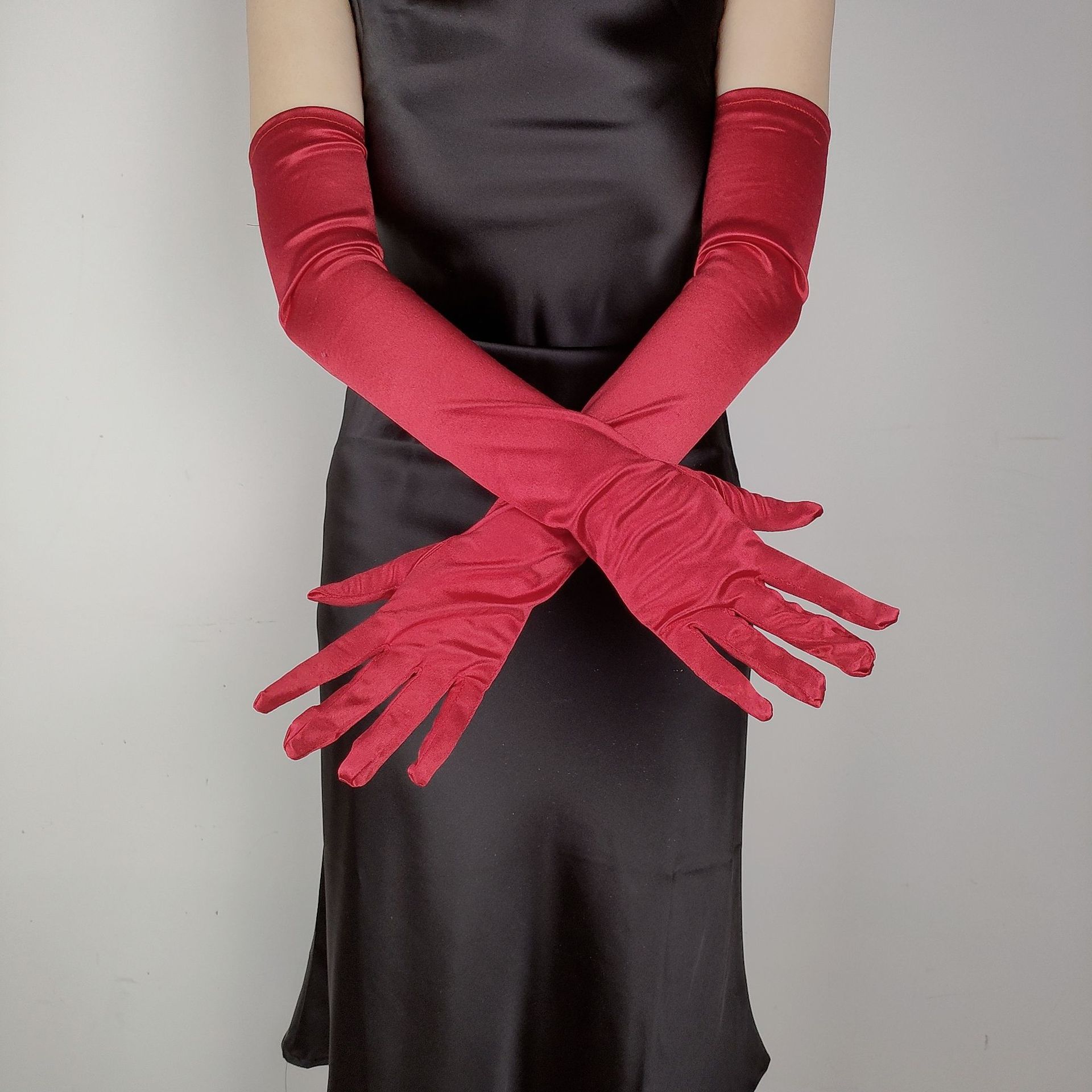 55CM 길어진 새틴 탄성 새틴 장갑 빈티지 원피스 웨딩 사진 보석 코스프레 숙녀 장갑