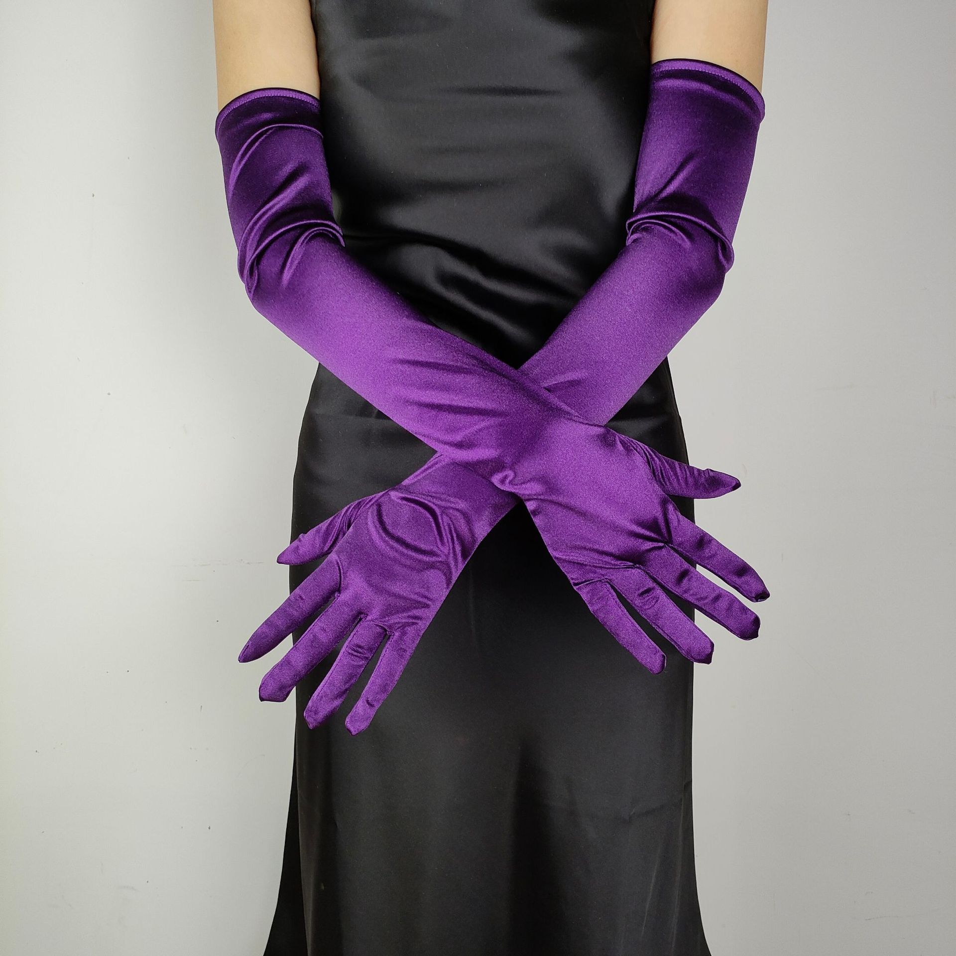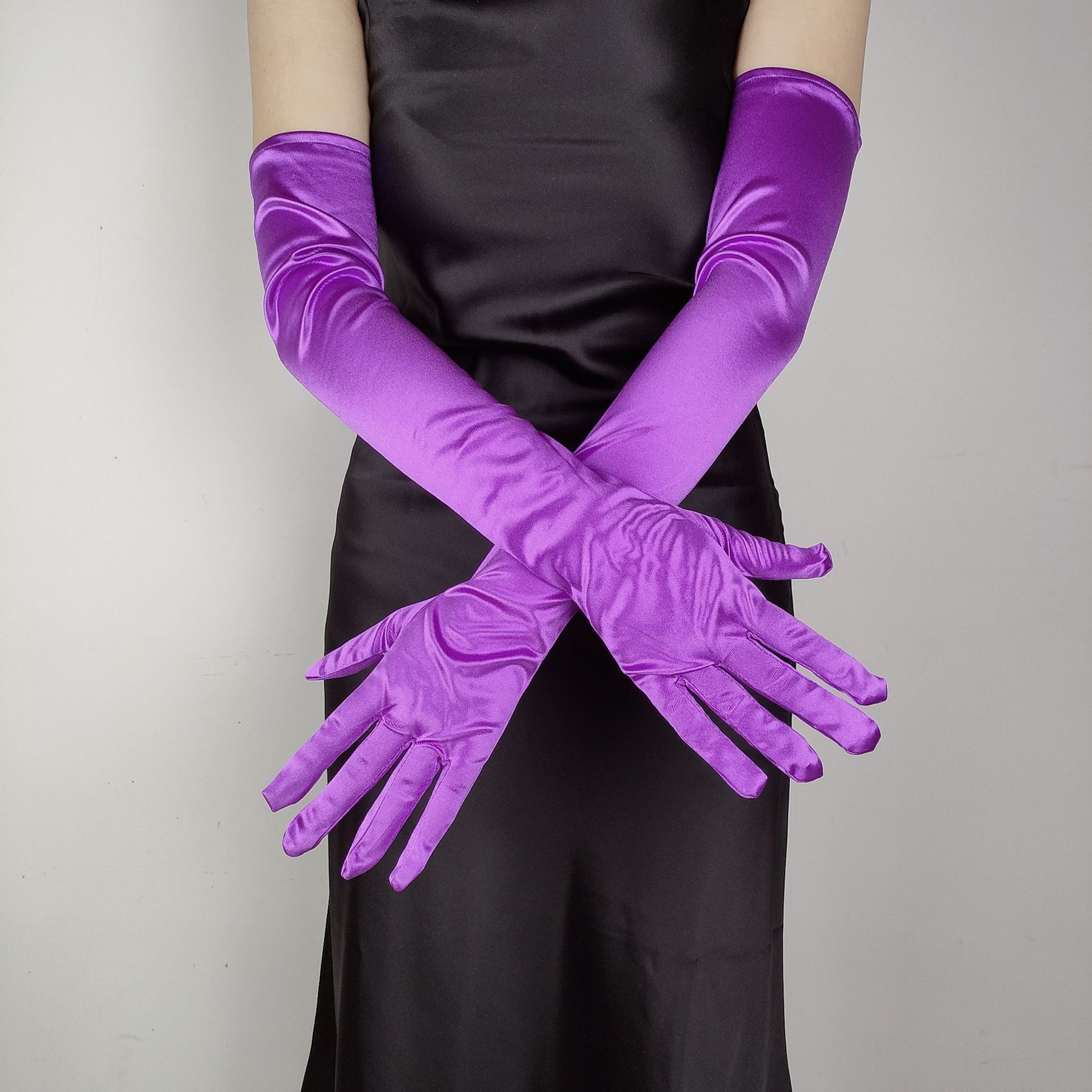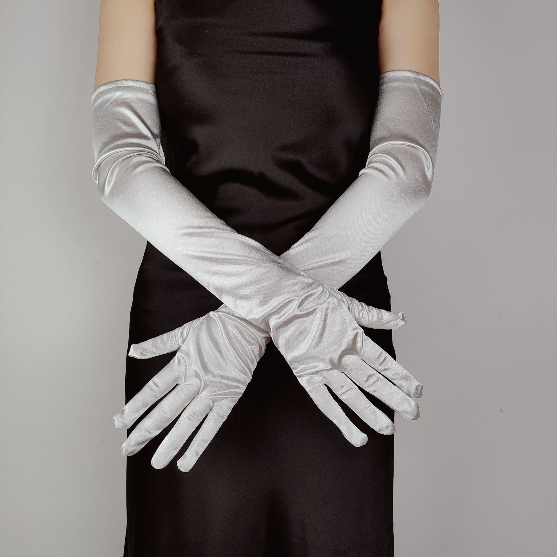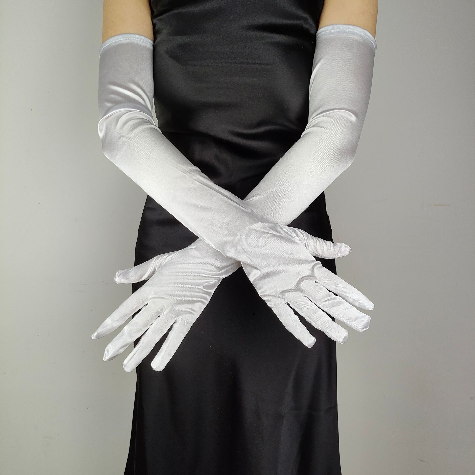 55CM 길어진 새틴 탄성 새틴 장갑 빈티지 원피스 웨딩 사진 보석 코스프레 숙녀 장갑