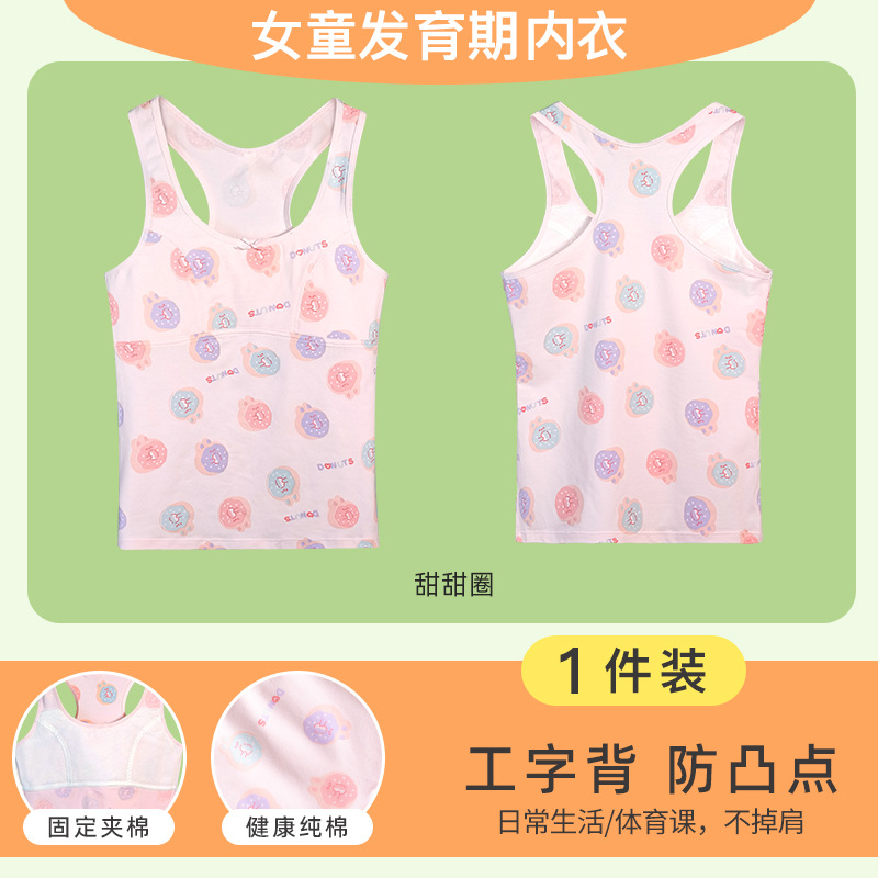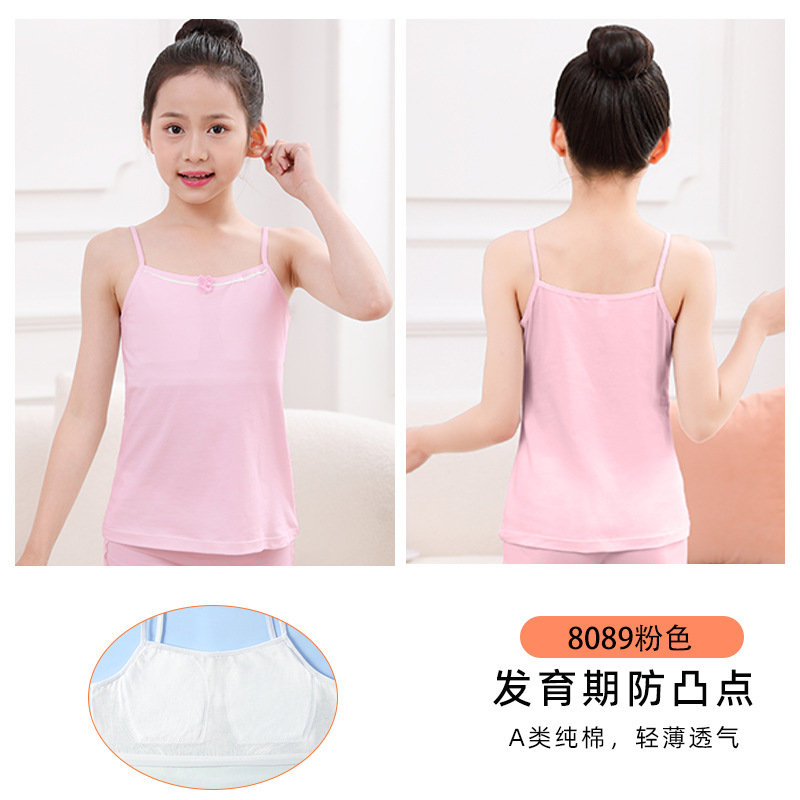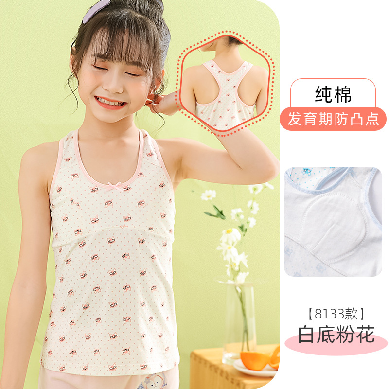 여아 스몰 조끼 퓨어 화이트 아이백 여아 브라 롱 노 스틸 링 개발 무대 기본 학생 12 큰 어린이스토어 가기