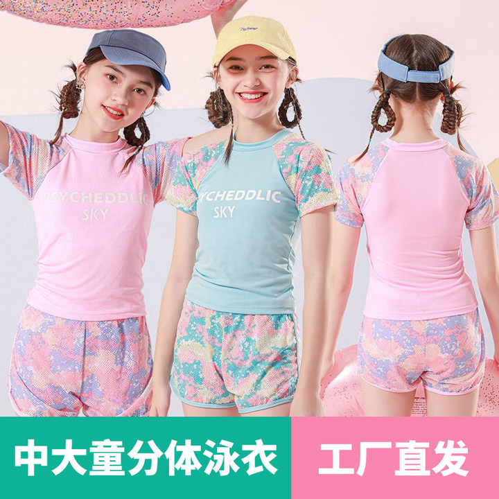 어린이 수영복 여성용 2022 새로운 스플릿 스포츠 소녀 중간 및 큰 어린이 온천 플랫 수영복 소녀스토어 가기