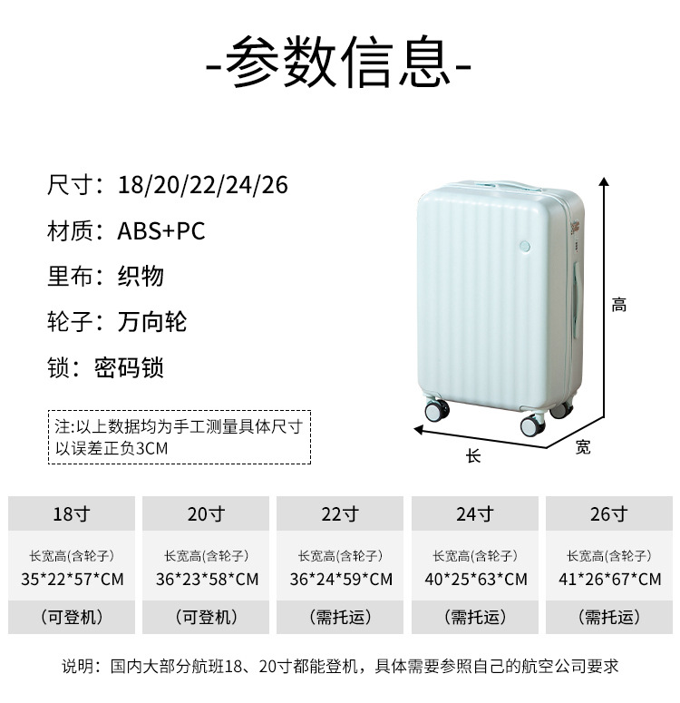 여학생용 여행가방 20inch 심플하고 튼튼하며 내구성이 뛰어난 트롤리 케이스 여행가방 비밀번호가 있는 여행가방 남성용 기내용 캐리어 24inch