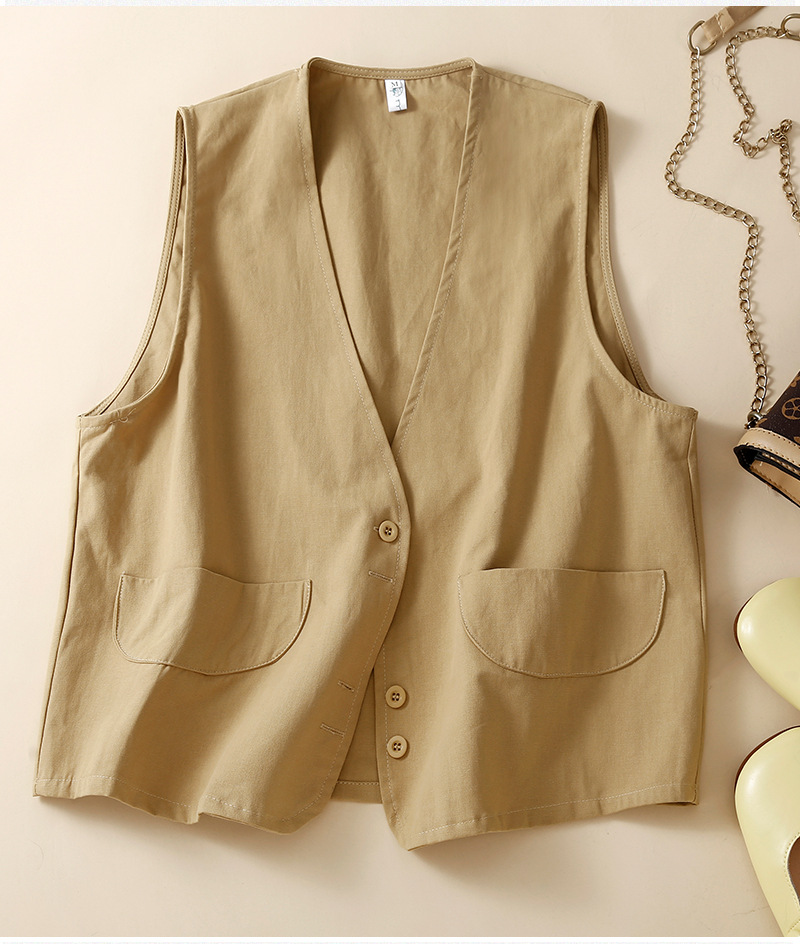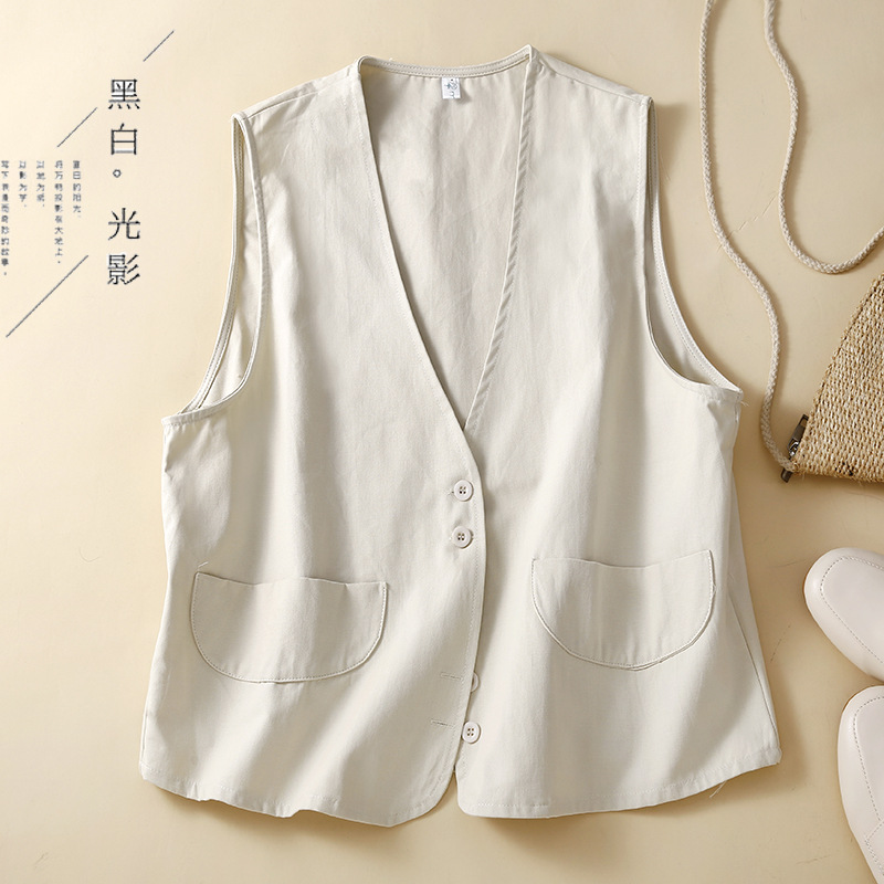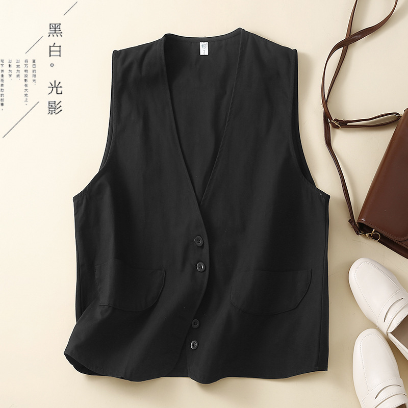 2023 봄 4 색 새로운 디자이너 면 민소매 조끼 여성 느슨한 단색 스택 양복 조끼 작은 조끼