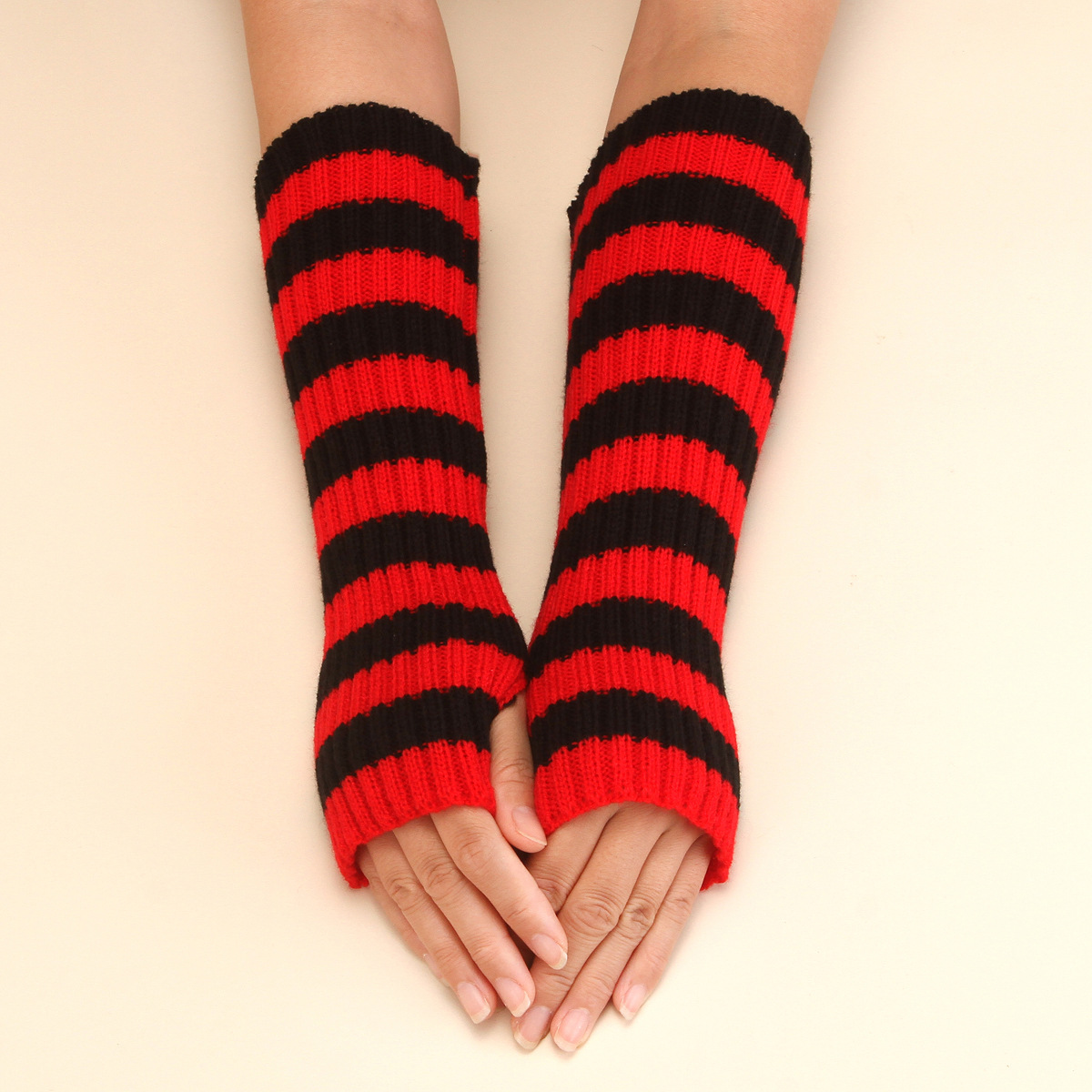 새로운 크로스보더 가을 겨울 울 장갑 남녀공용 스트라이프 니트 보온 손가락 없는 팔토시 손목 보호 슬리브
