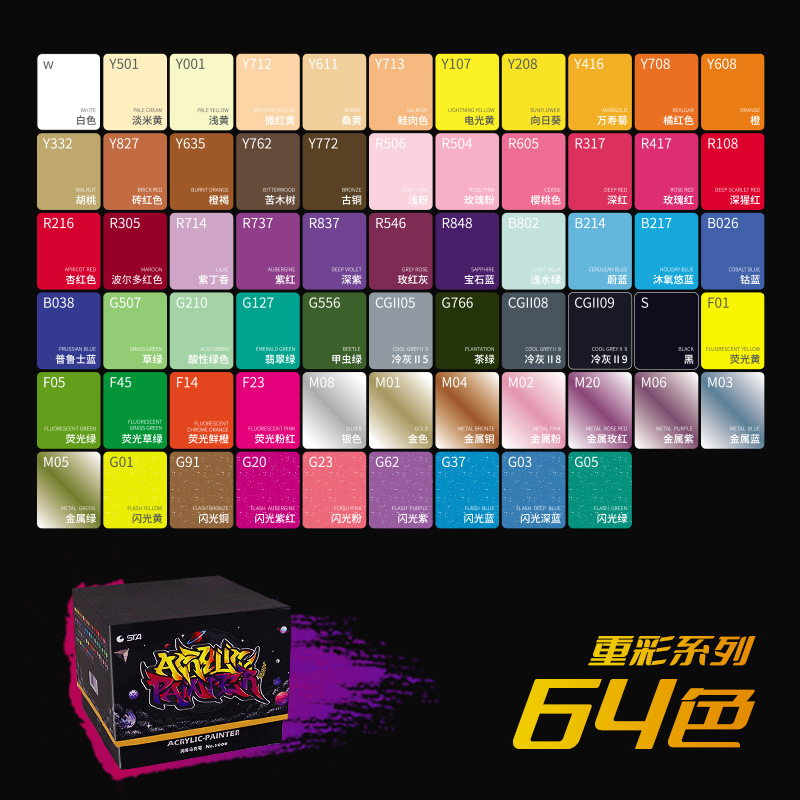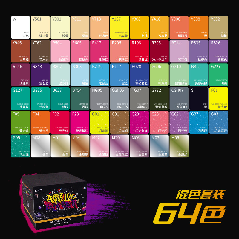 • 무거운 색상 64 + 컨테이너 + 15 펜촉