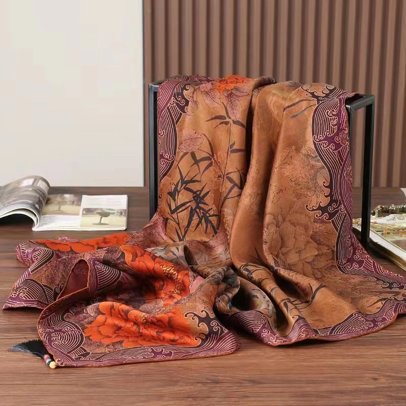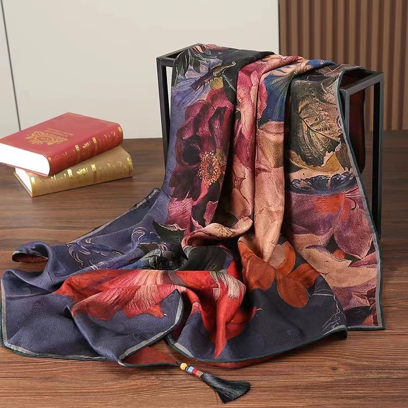 무거운 클래식 고귀한 가스 향기로운 구름 거즈 스퀘어 실크 목도리 뽕나무 실크 스카프 항저우 실크 도매 여성 22Q060