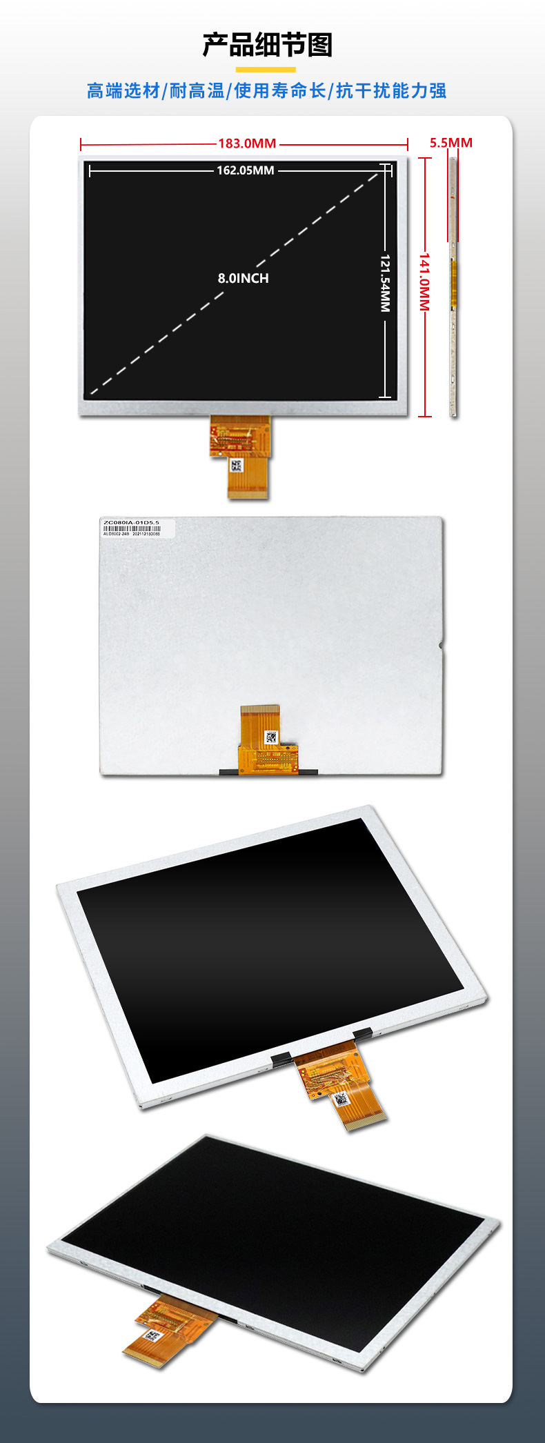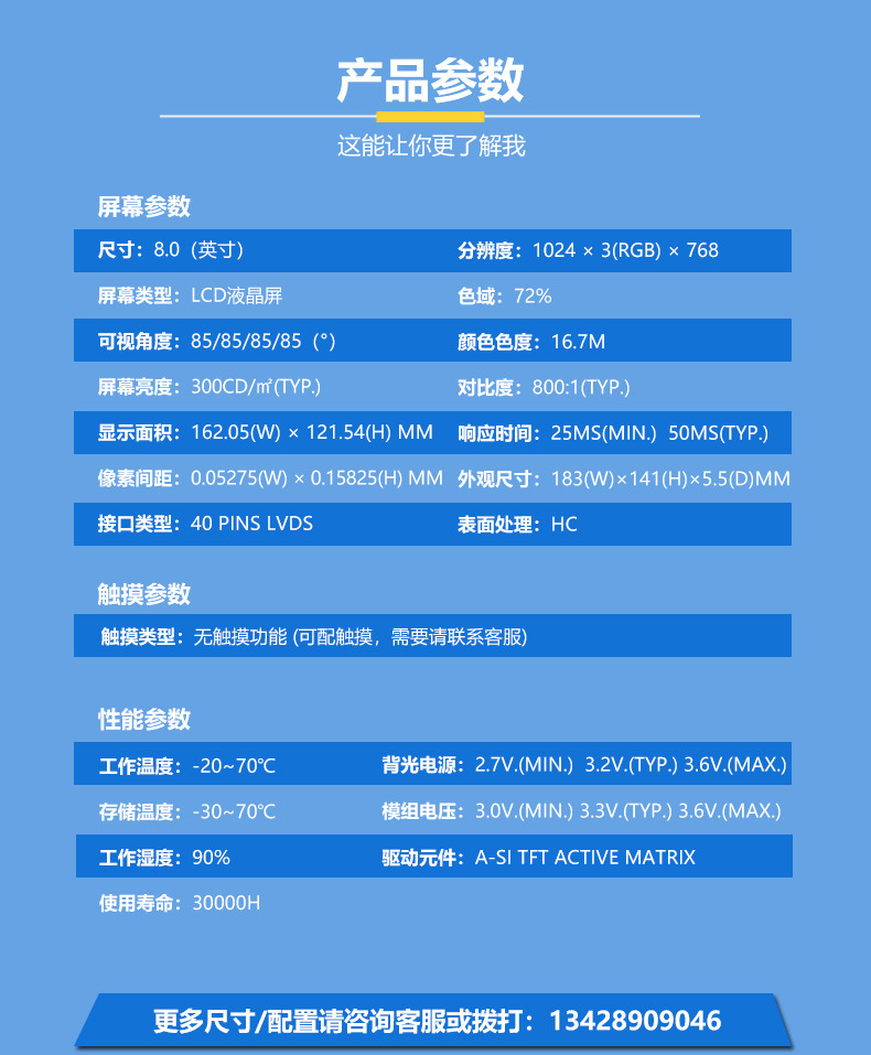 8inch LCD 화면 1024*768 밝기 1000nits 40PIN LVDS 전체 세트로 제공