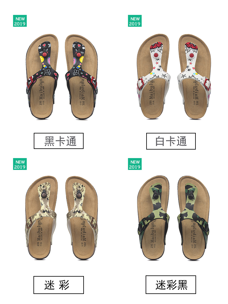 남성과 여성을위한 McBuren Burken 플랫 코르크 슬리퍼 커플 비치 홈 야외 플립 플롭 여름용 Bocken 신발