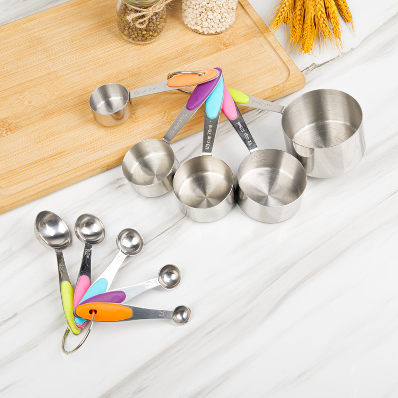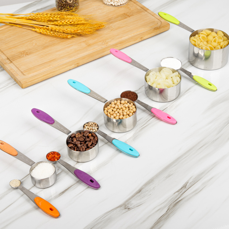스테인레스 스틸 측정 스푼 계량 컵 세트 10 실리콘 손잡이 분유 커피 스푼 베이킹 도구 계량 스푼 세트 도매스토어 가기