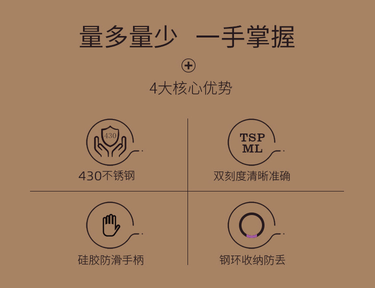 【规格】: 量勺:1/4 stp,1/2 stp,1 stp,1/2 sbtp,1 sbtp