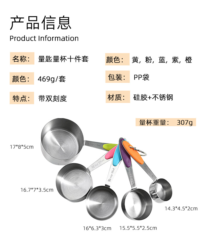 【品名】:10件套彩硅量匙量杯套件