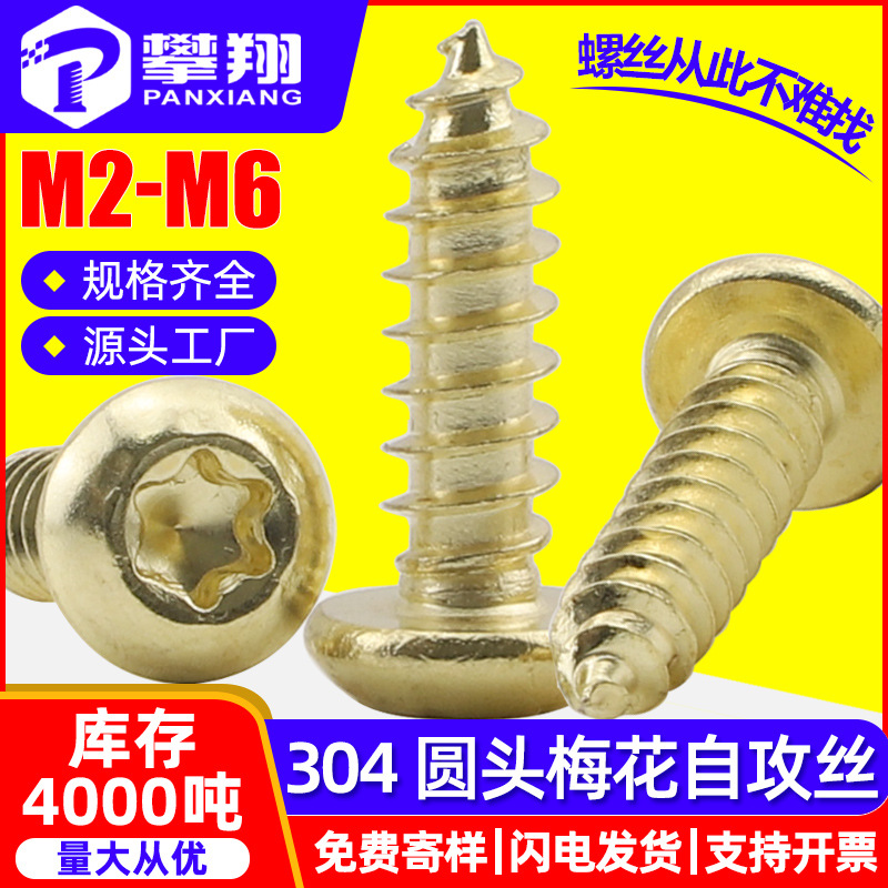 304 스테인레스 스틸 라운드 헤드 내부 매화 꽃 셀프 태핑 황금 나사 팬 헤드 매화 꽃 홈 셀프 태핑 나사 M2/M3/M4/M5