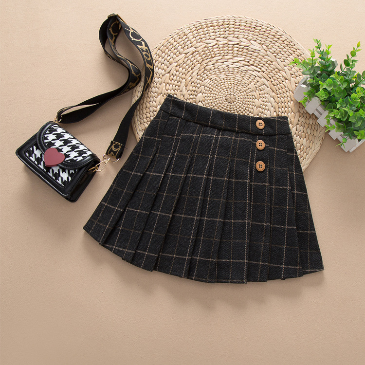 여아 스커트 2023 가을과 겨울 새로운 눈부심 방지 격자 무늬 스커트 JK 플리츠 스커트 모직 스커트 두꺼운 스커트