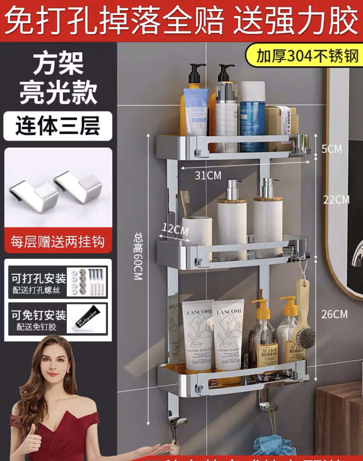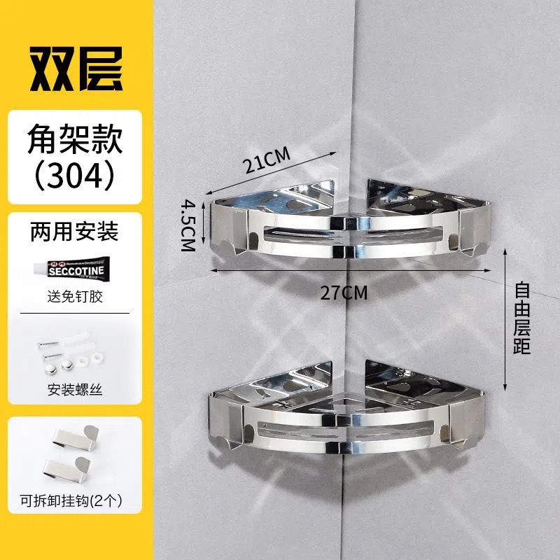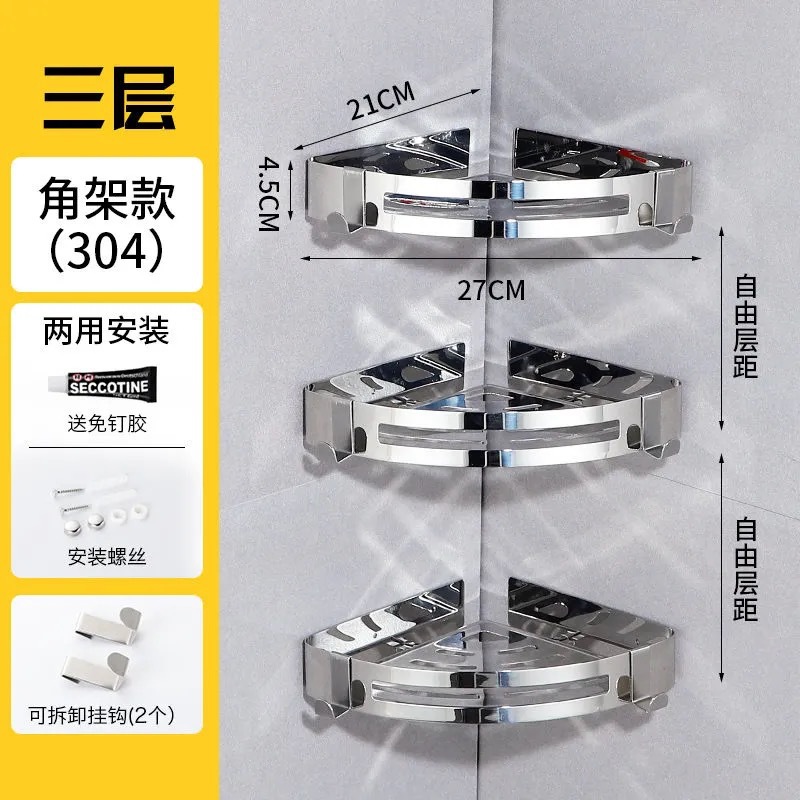 304 스테인레스 스틸 삼각대 화장실 펀치 프리 랙 욕실 코너 랙 주방 수납 랙 하드웨어 펜던트스토어 가기