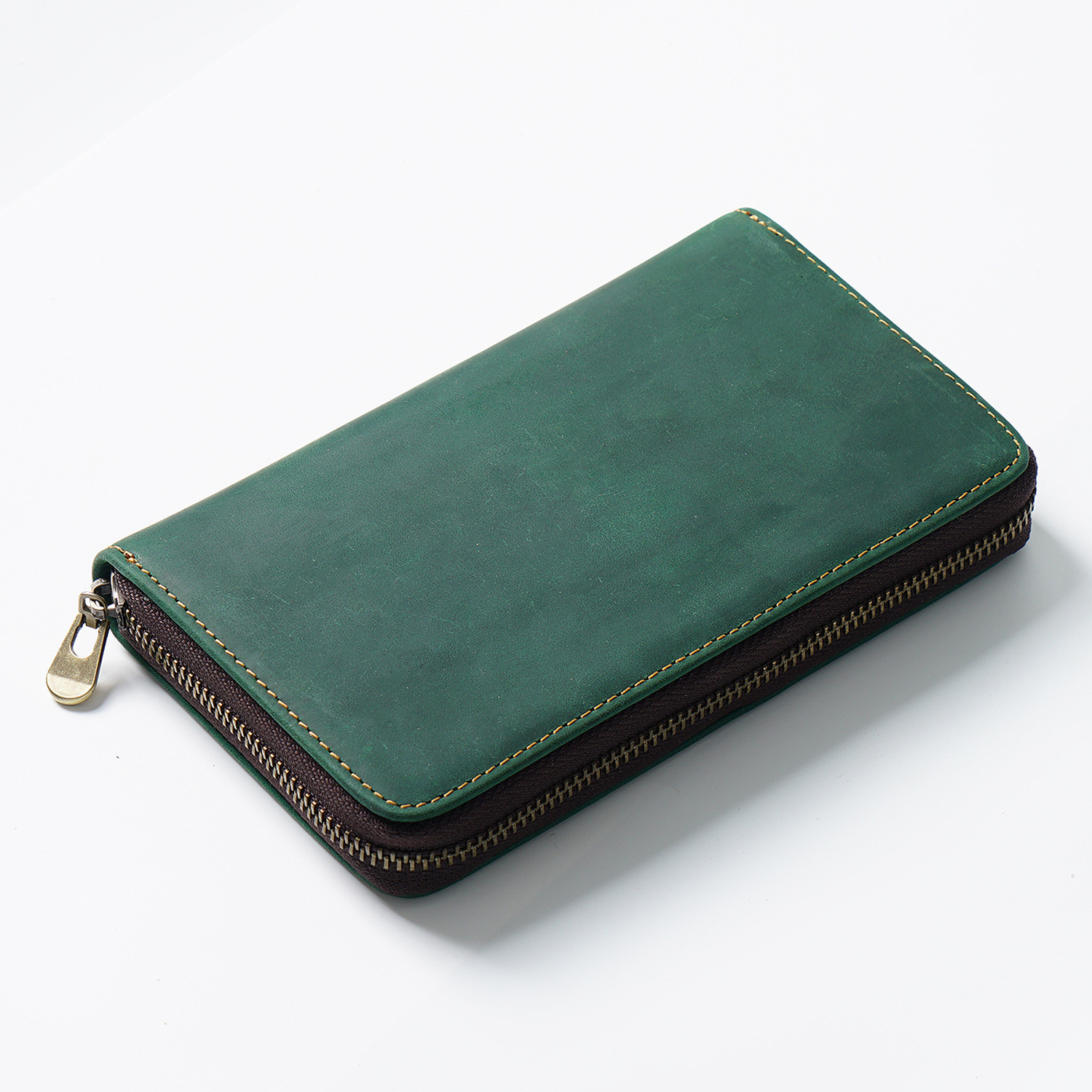 원래 첫 번째 레이어 가죽 지퍼 펜 보관 가방 복고풍 소 가죽 멀티 팩 대용량 다기능 편지지 상자 펜 상자스토어 가기