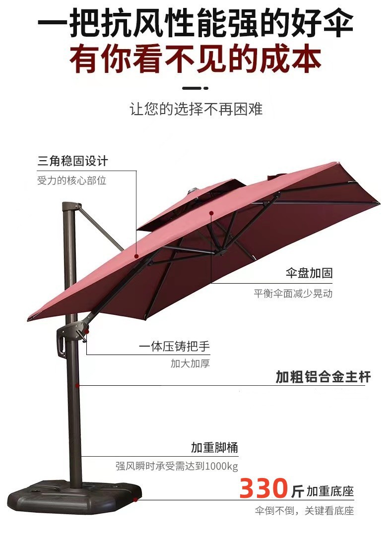 • 5년 보증/8CM 항공 알루미늄 이중 극 플래그십 모델/완전 밝은 LED 우산 갈비뼈/ 2.5m 정사각형 + 150kg 물 탱크