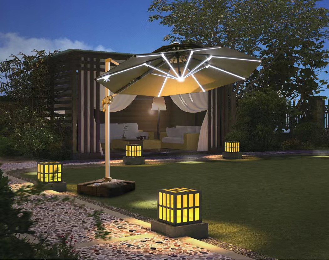 빛 태양 광 LED 라이트 스트립 야외 파라솔 안뜰 우산 야외 빌라 테라스 정원 대형 로마 우산