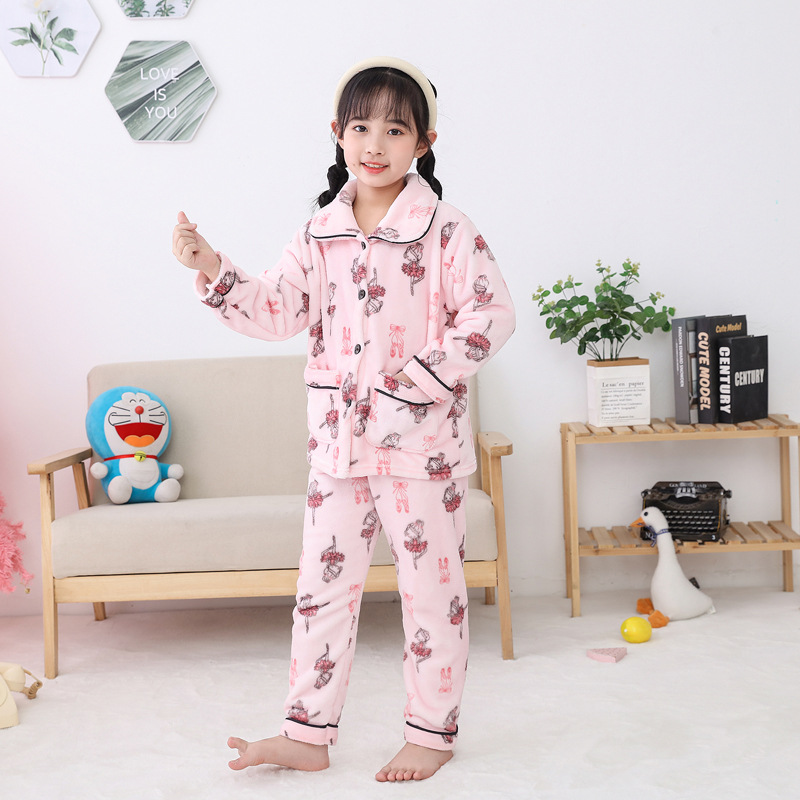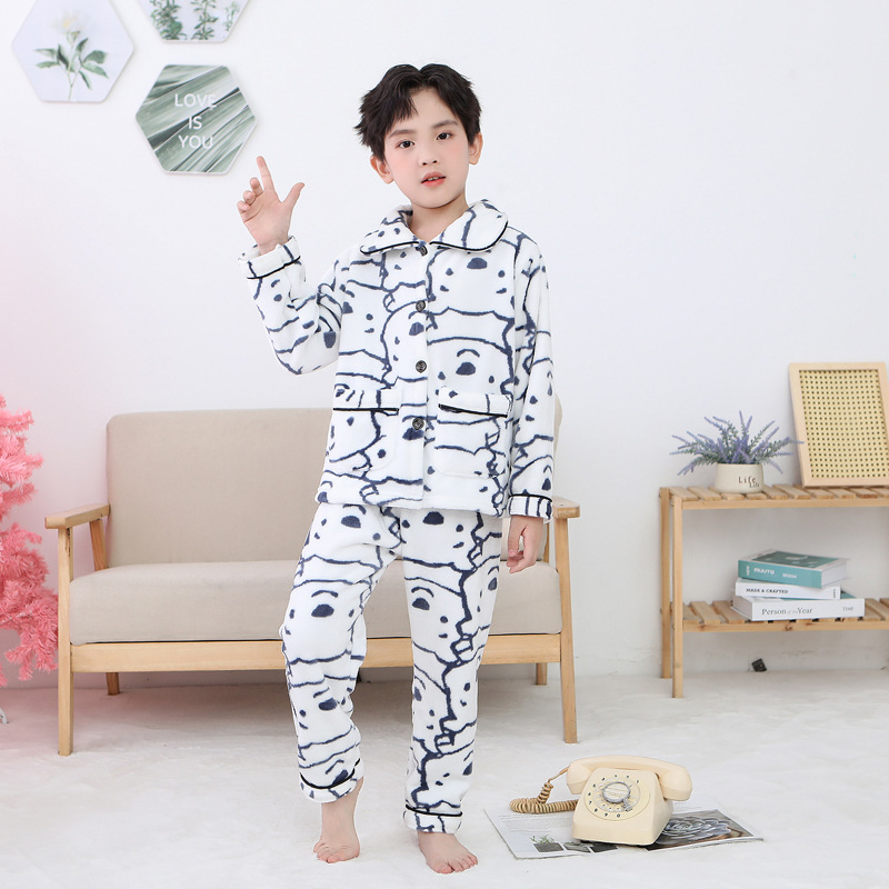 가을과 겨울 세트 어린이 플란넬 잠옷 새로운 소년 소녀 가정 의류 세트 부모-자식 의류 기모 두꺼운 어린이 의류스토어 가기