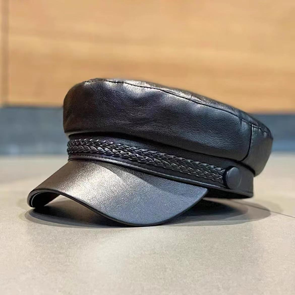 영국 복고풍 PU 플랫 캡 한국 패션 블랙 가죽 캡 얼굴 작은 베레모 숙녀 가을과 겨울 도매스토어 가기