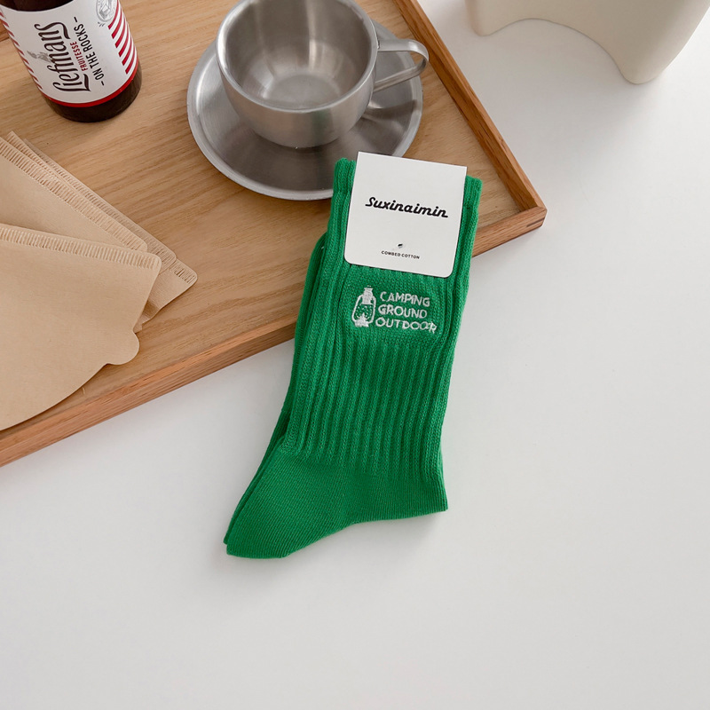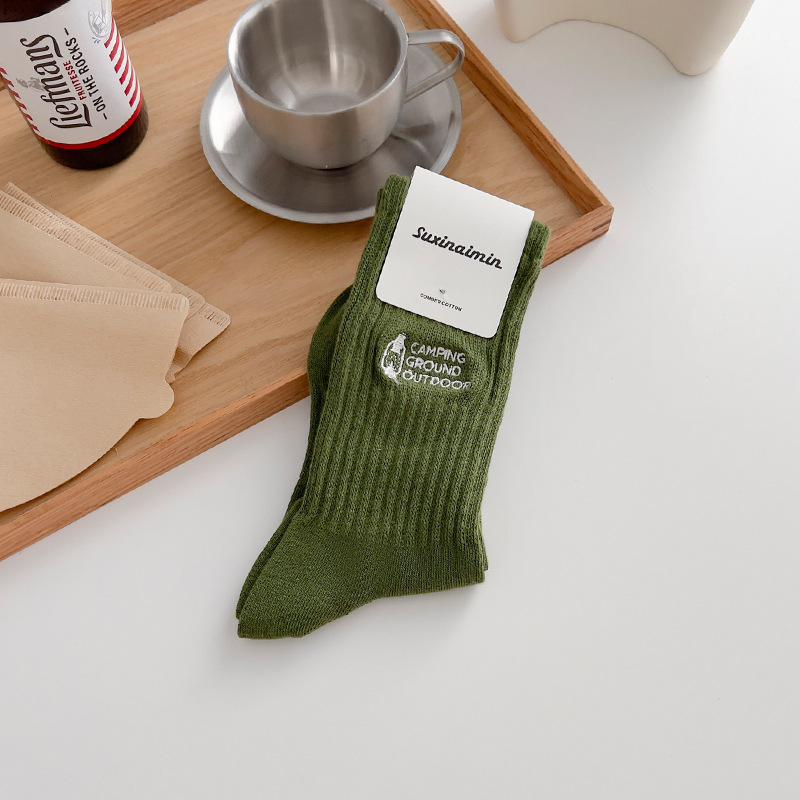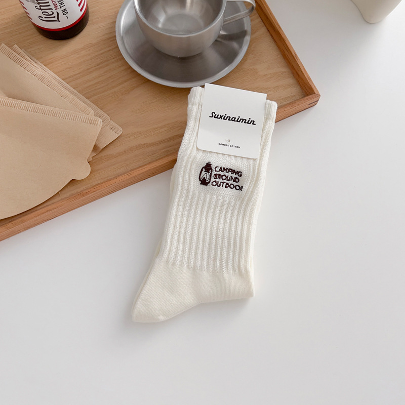 Zhuji 양말 빈티지 툴링 캠핑 오일 램프 자수 중간 양말 트렌디 한 개인 편지 면 더미 양말스토어 가기
