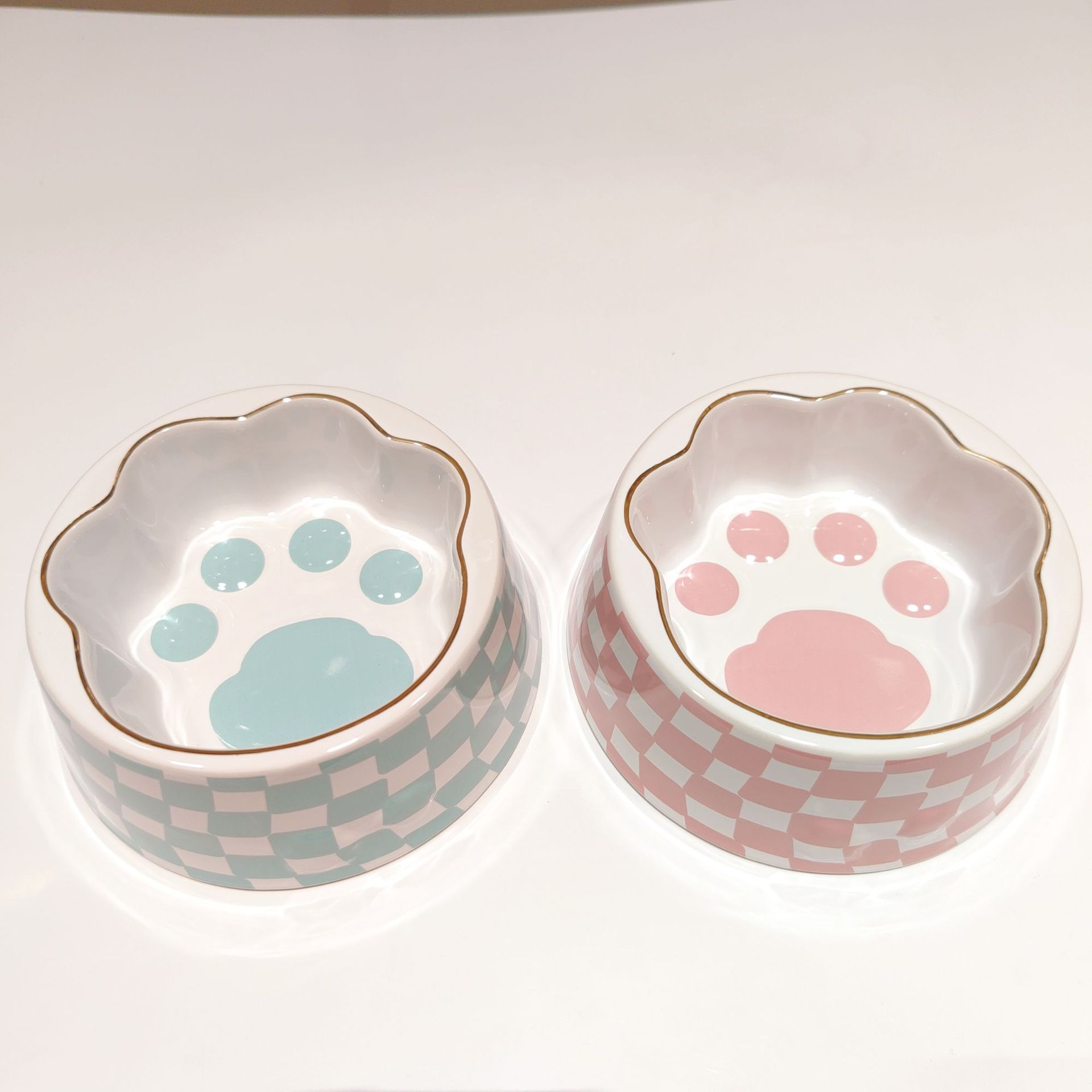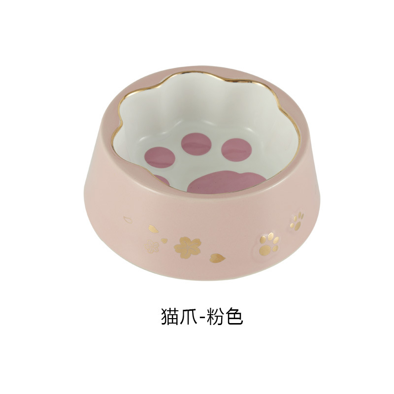 공장 직공급 고양이 발톱 사발 벚꽃 애완견 사발 고양이 사발 목 보호 노크 방지 애완 동물 세라믹 사발스토어 가기