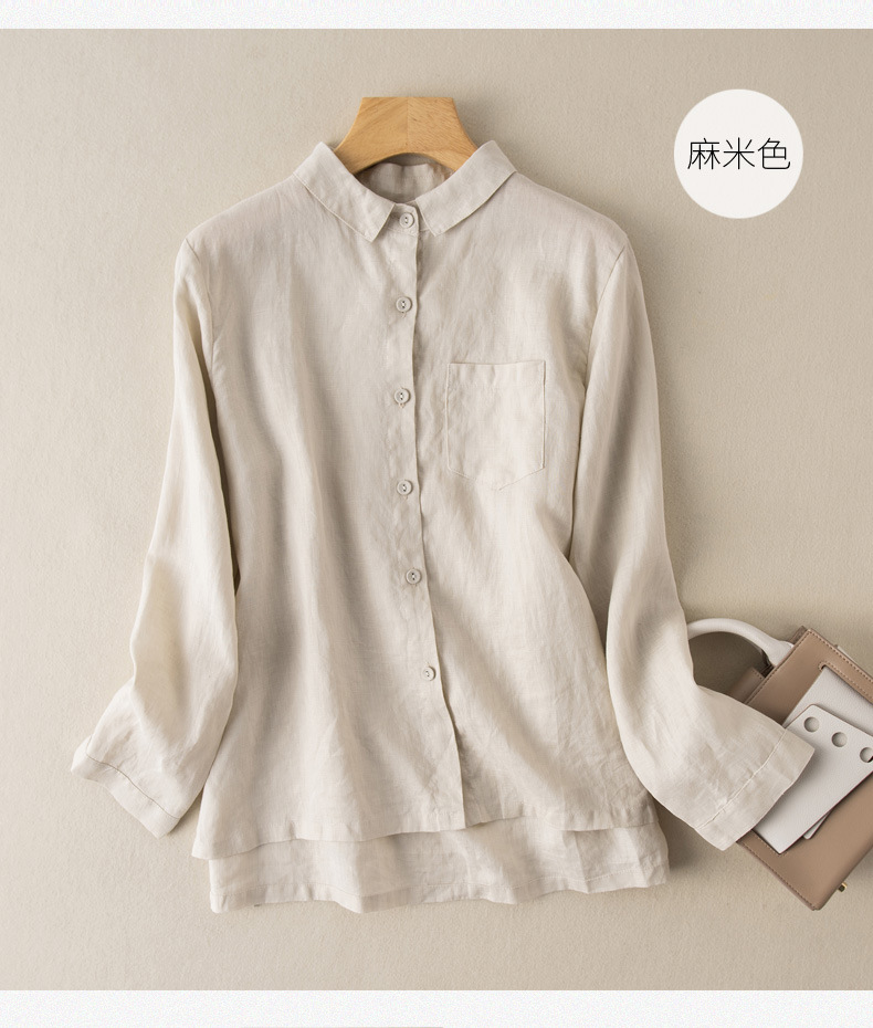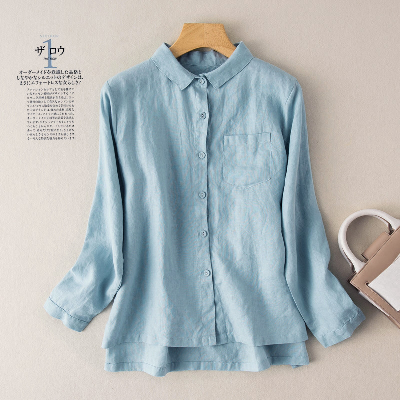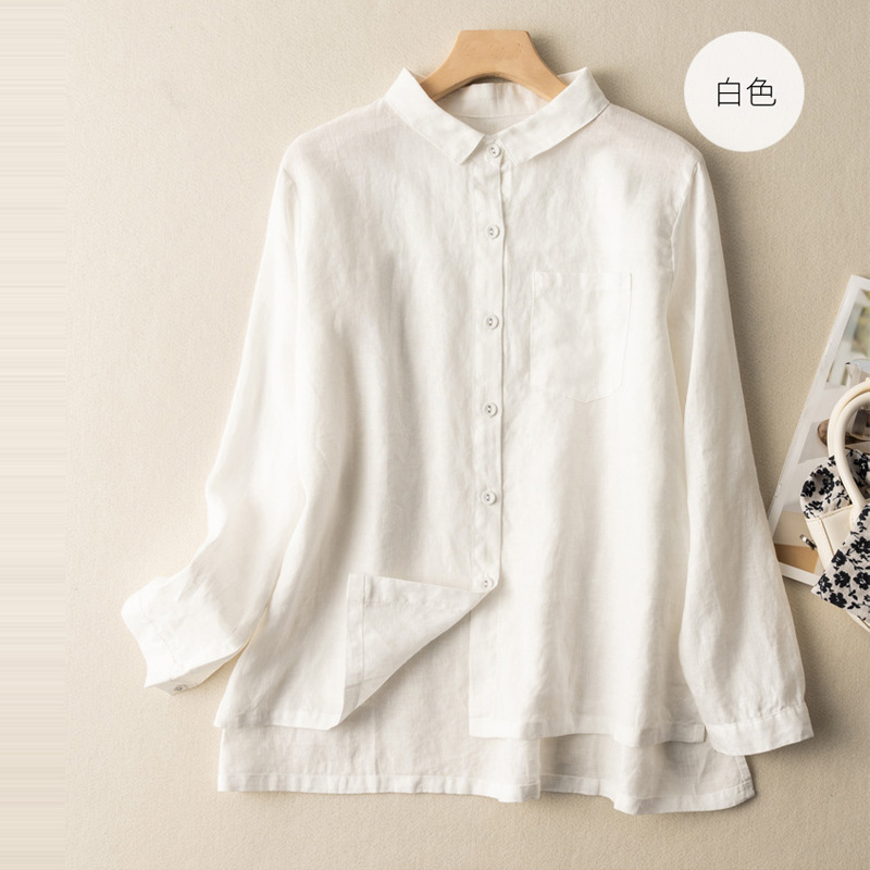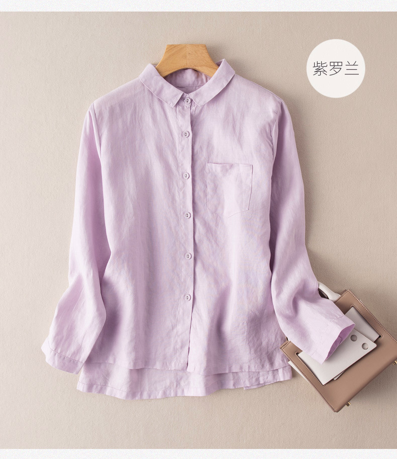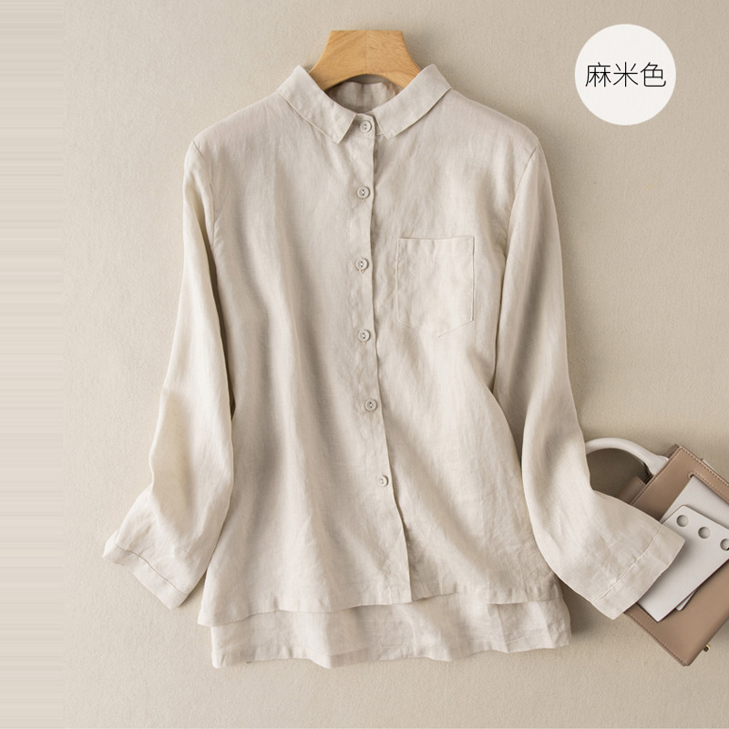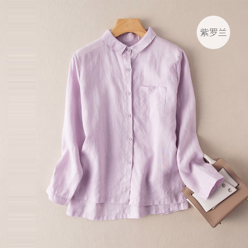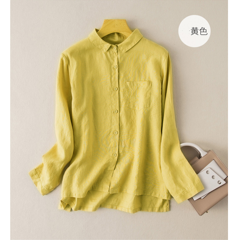 6가지 색상 2026 봄 얇은 면마 셔츠 여성용 루즈핏 셔츠 외출용 홍콩 스타일 긴팔 셔츠 여성용 홍콩 스타일