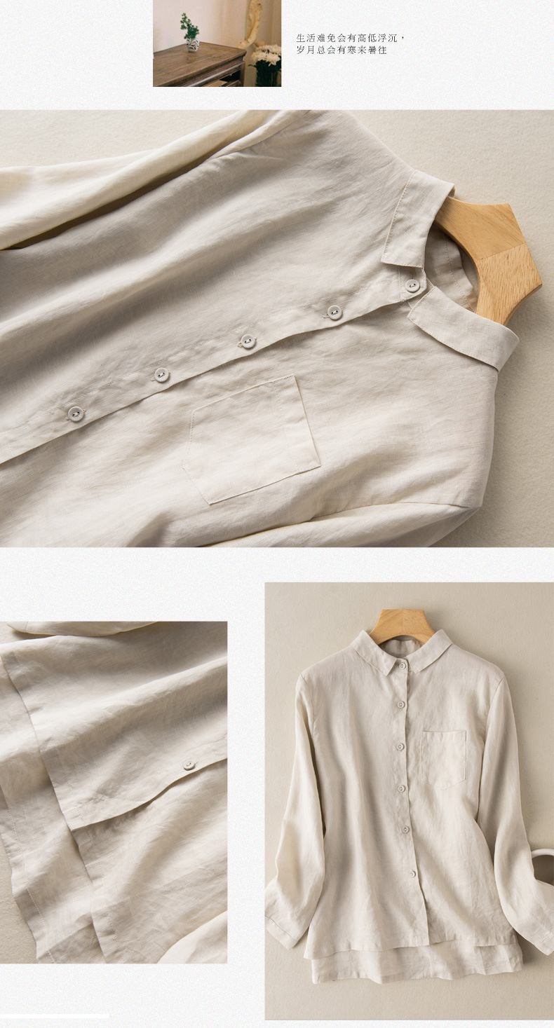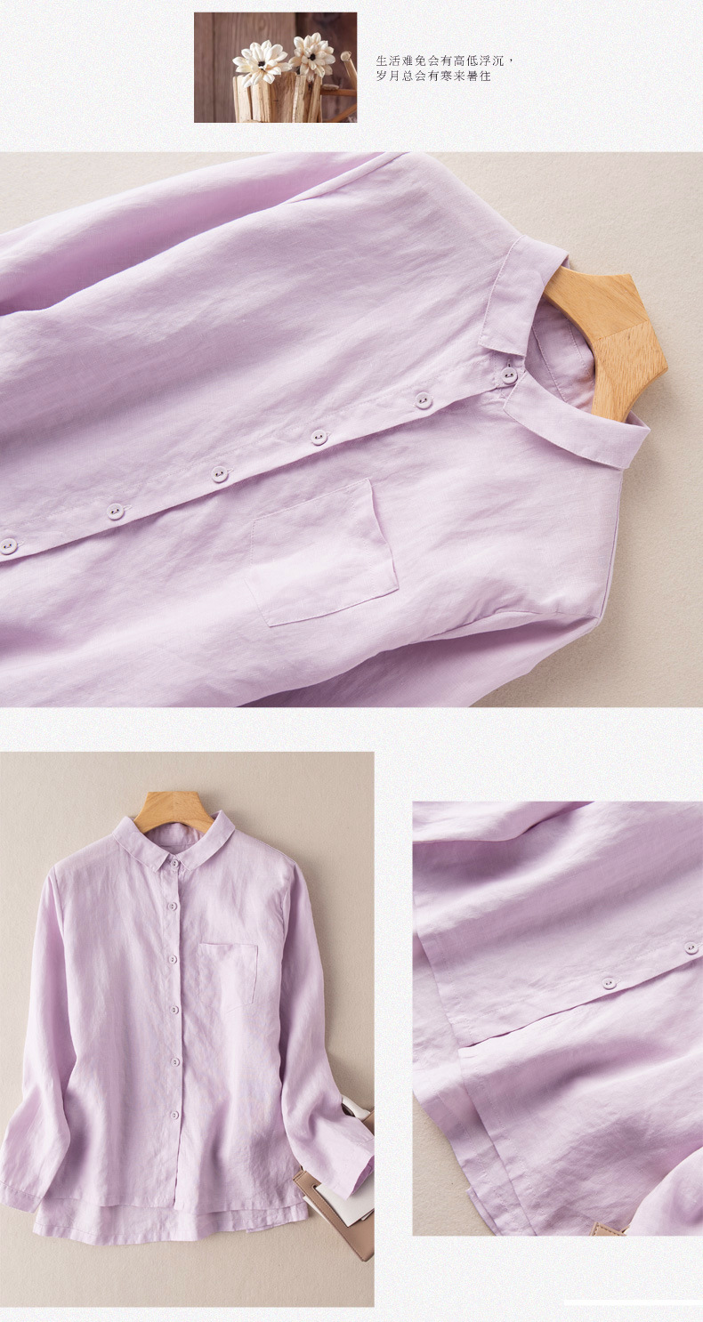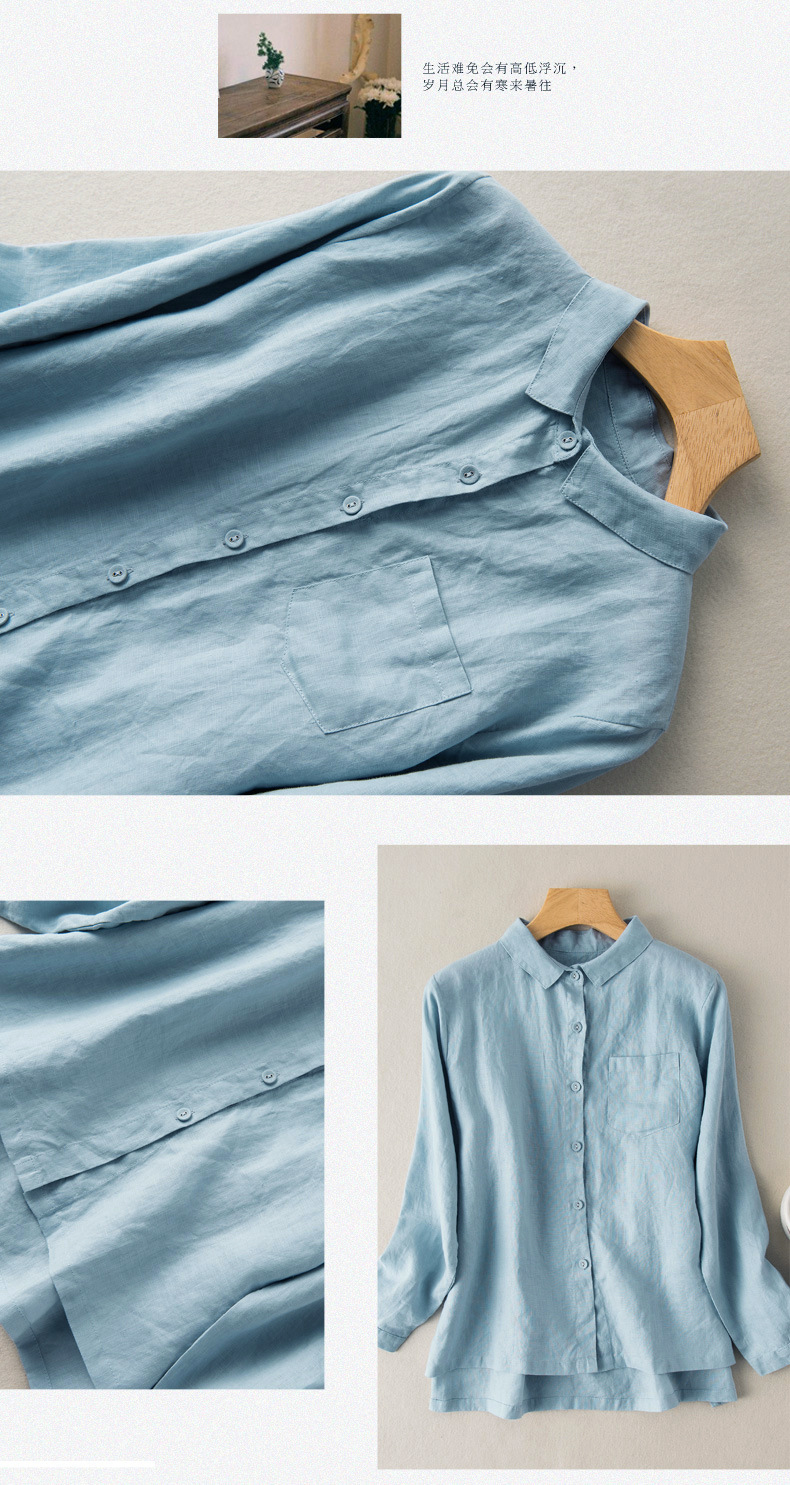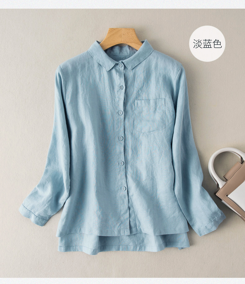 6가지 색상 2026 봄 얇은 면마 셔츠 여성용 루즈핏 셔츠 외출용 홍콩 스타일 긴팔 셔츠 여성용 홍콩 스타일