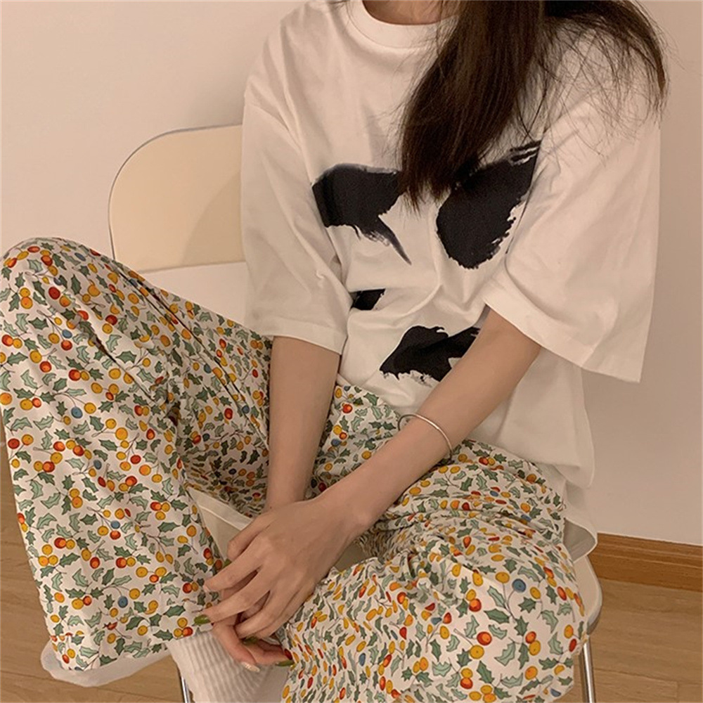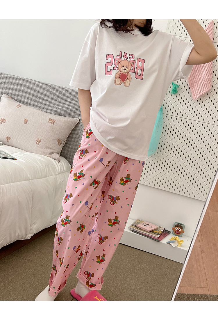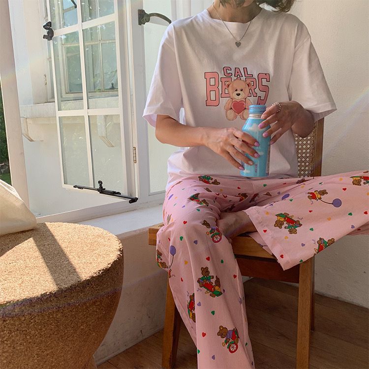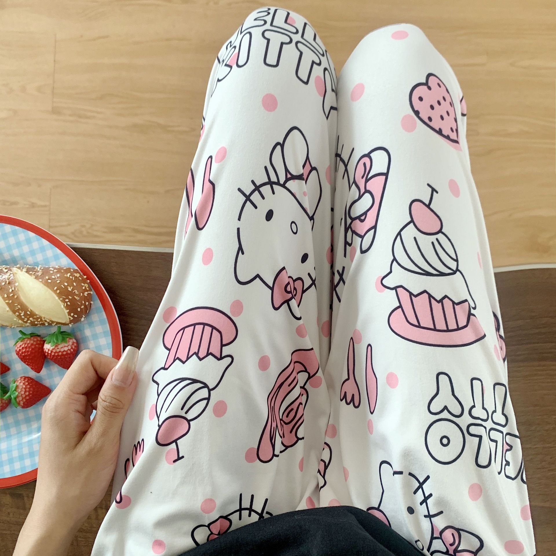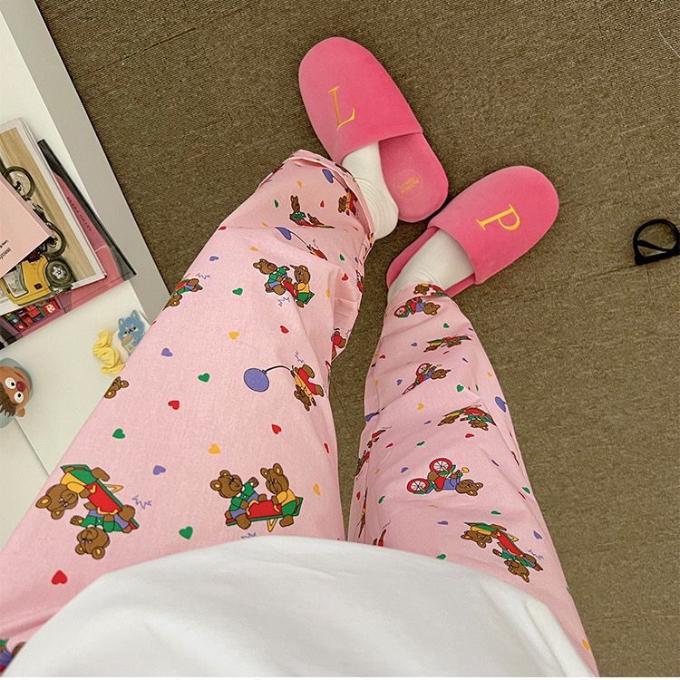 걷는 바지! 만화 잠옷 바지 여자의 여름과 가을 새로운 겉옷 홈 에어컨 바지 한국 스타일 느슨한 캐주얼 바지