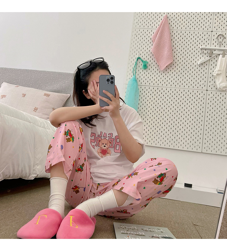 걷는 바지! 만화 잠옷 바지 여자의 여름과 가을 새로운 겉옷 홈 에어컨 바지 한국 스타일 느슨한 캐주얼 바지스토어 가기