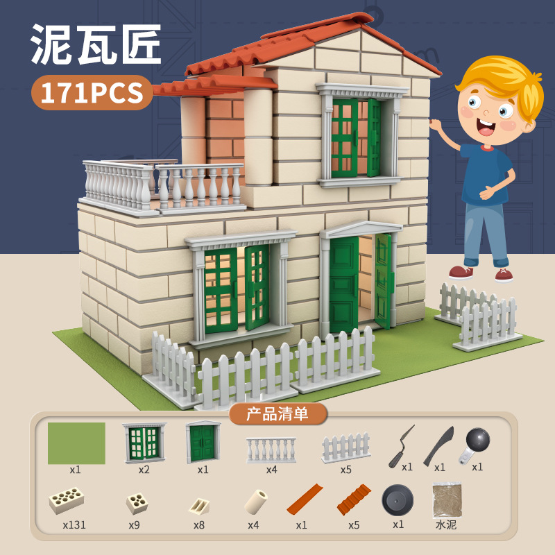 리틀 메이슨 어린이 빌딩 하우스 건축가 수제 DIY 시뮬레이션 미니 벽돌 빌딩 소년 벽돌 조립 장난감