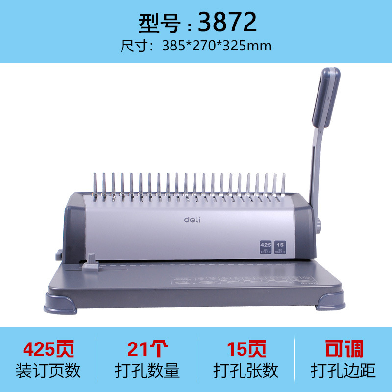델리 3872 바인딩 머신 앞치마 클램프 스트립 펀칭기 텐더 문서 펀칭 가능 한 번에 15 A4 용지 펀치