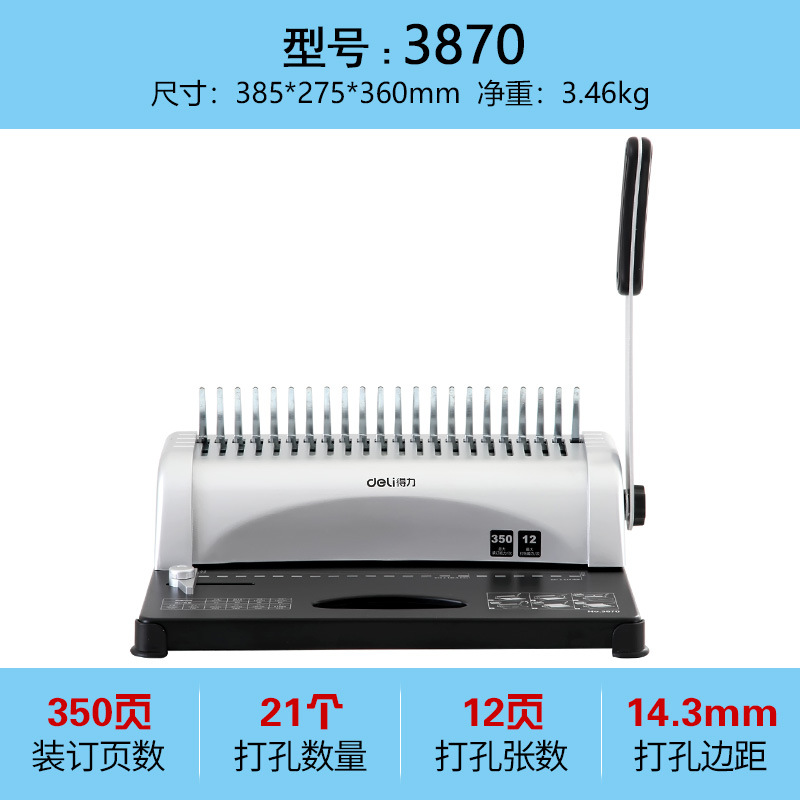 델리 3872 바인딩 머신 앞치마 클램프 스트립 펀칭기 텐더 문서 펀칭 가능 한 번에 15 A4 용지 펀치스토어 가기