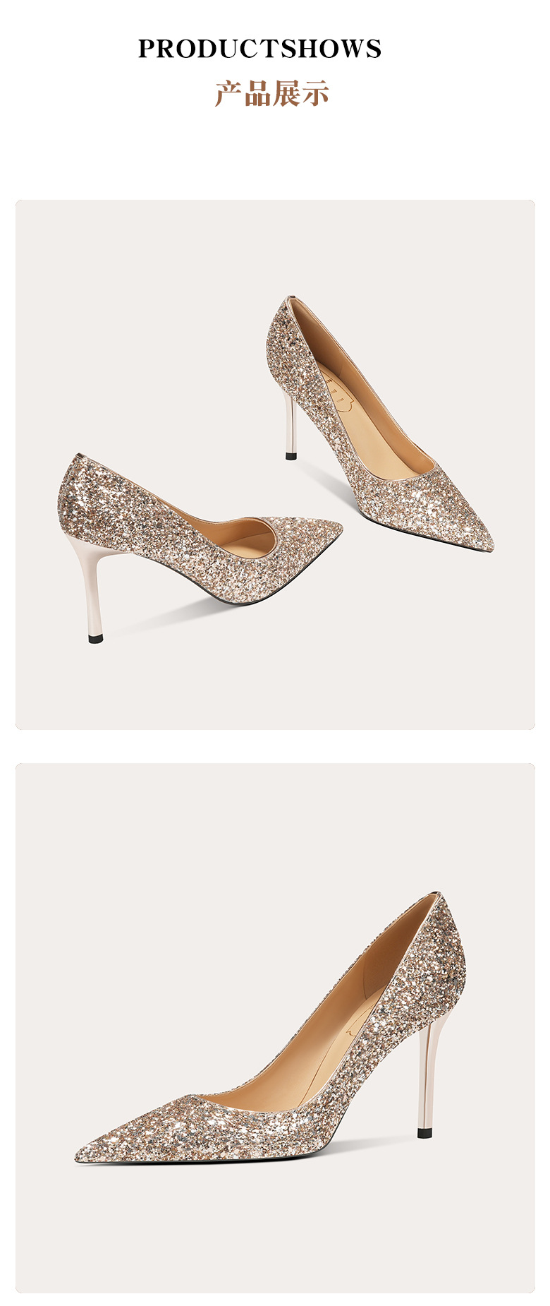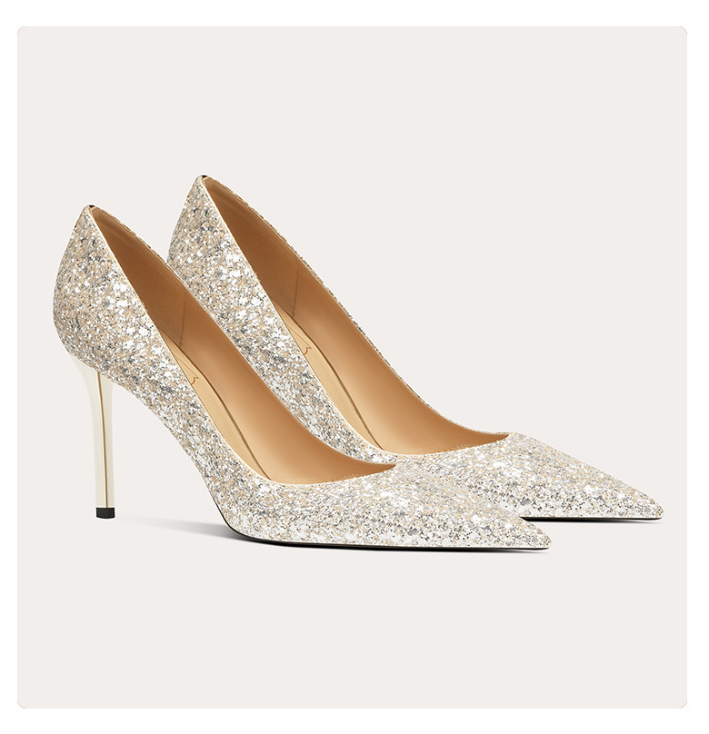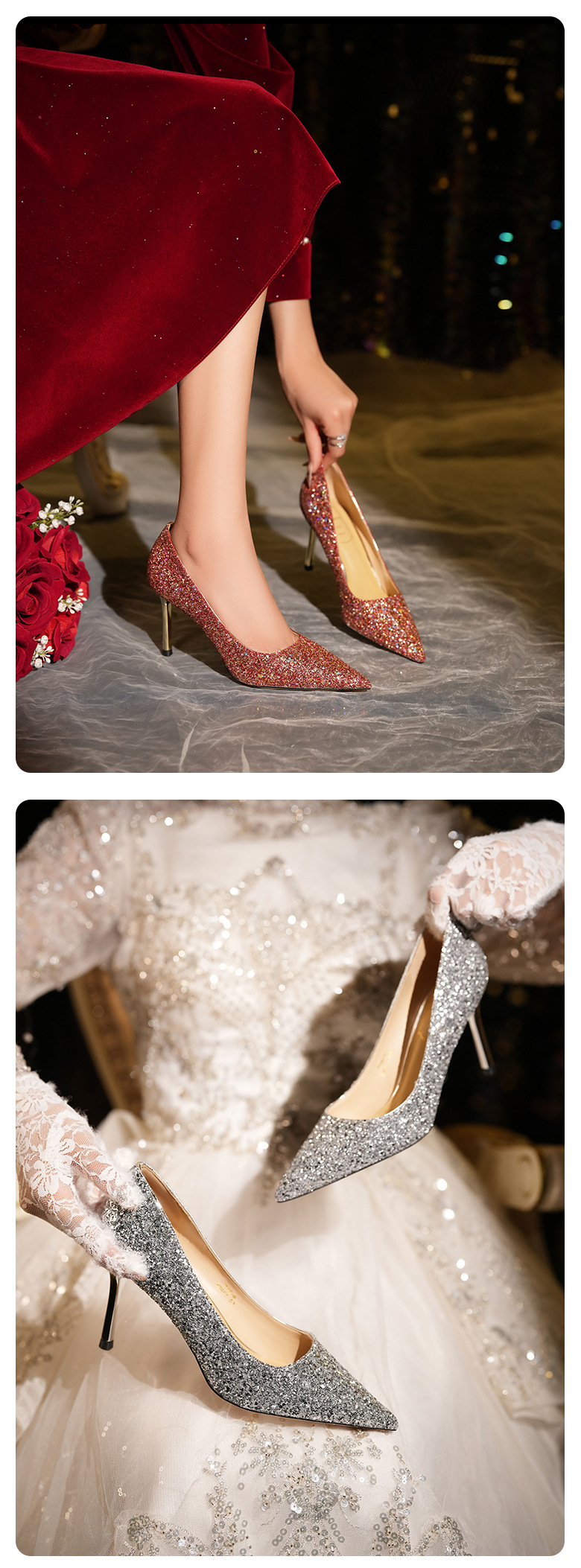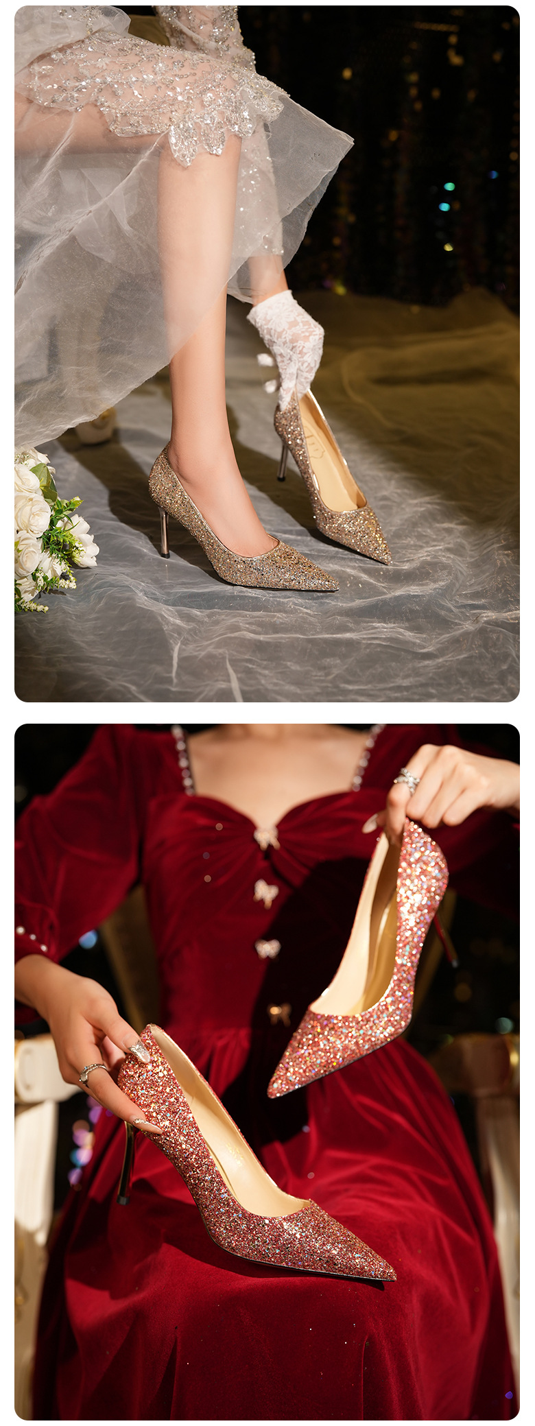 샴페인 웨딩 슈즈 여성용 신부 신발 Xiuhe 원피스 메인 웨딩 원피스 2-피곤하지 않은 발 고급 양가죽 크리스탈 하이힐