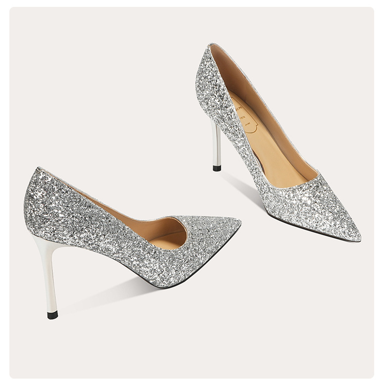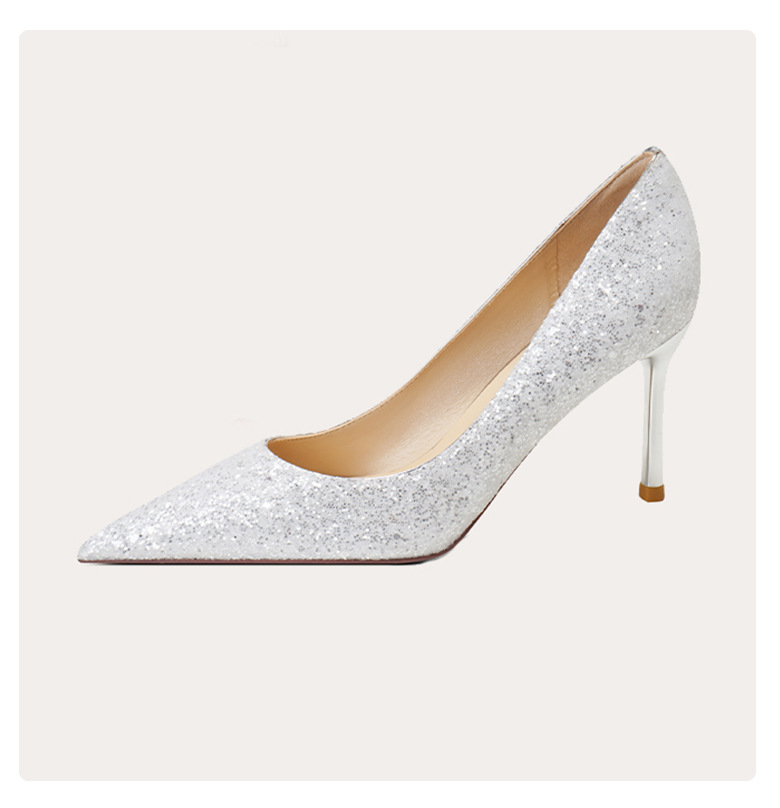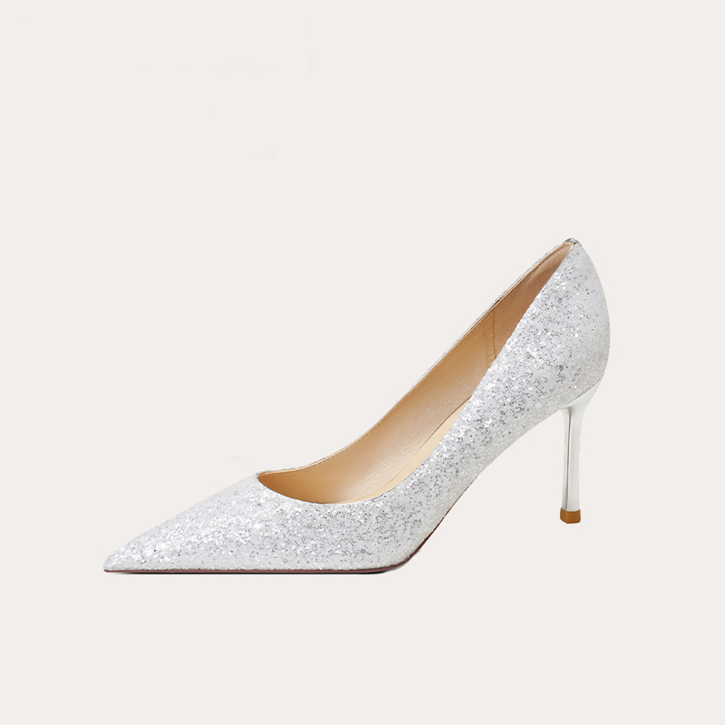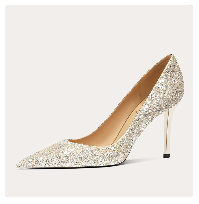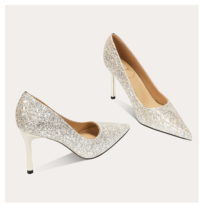 샴페인 웨딩 슈즈 여성용 신부 신발 Xiuhe 원피스 메인 웨딩 원피스 2-피곤하지 않은 발 고급 양가죽 크리스탈 하이힐