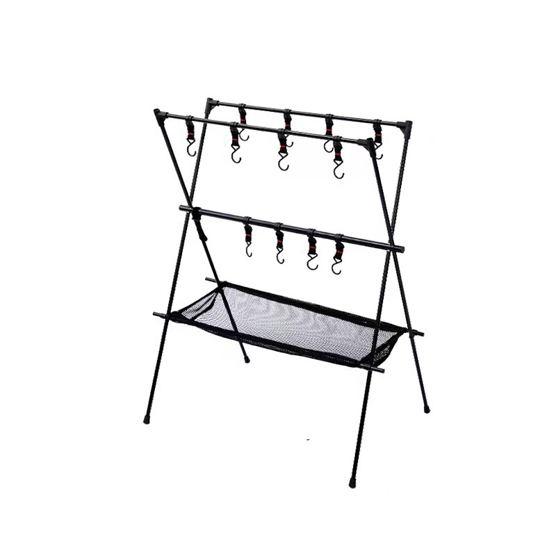 适合户外携带,易组装,重量轻,体积小,可挂衣物及厨具用品。