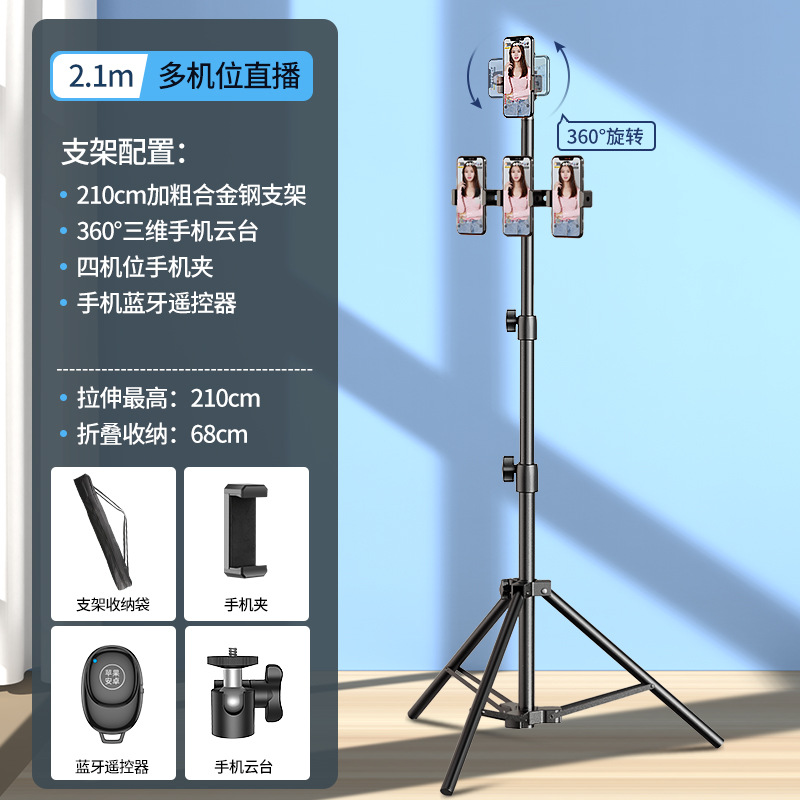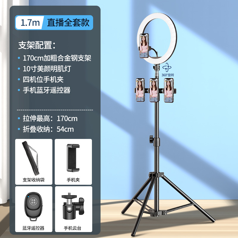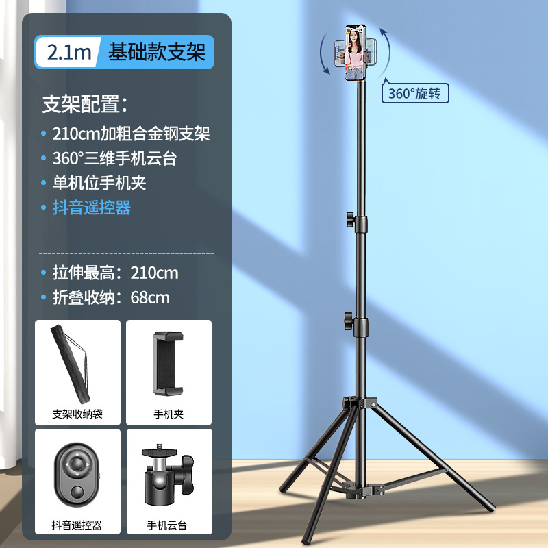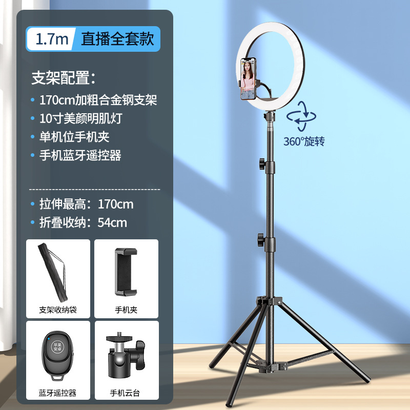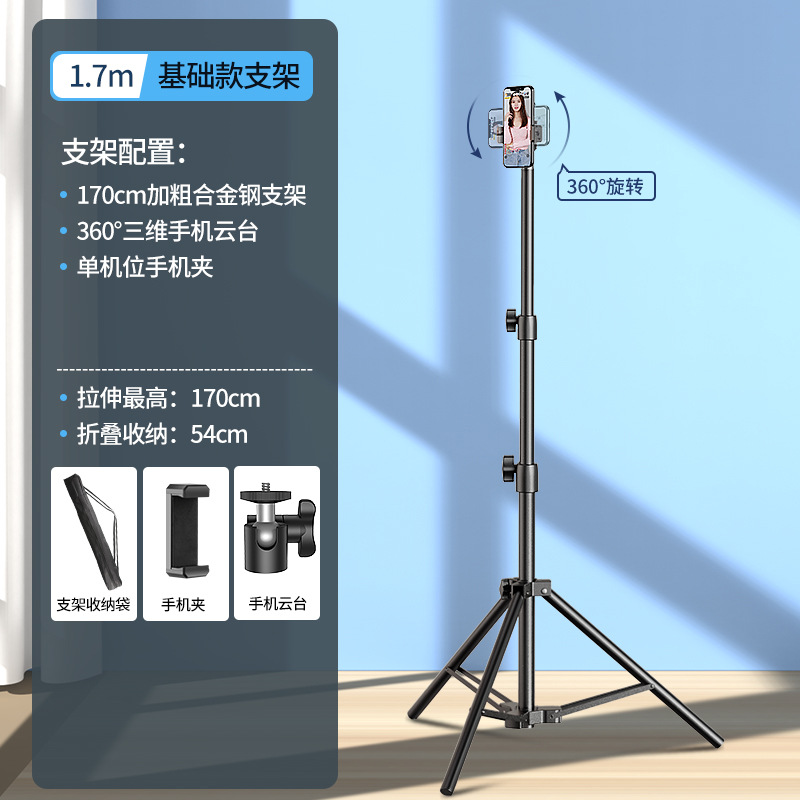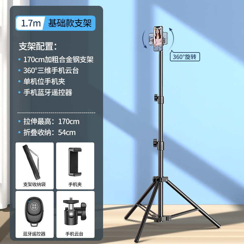 • 1.7 m [두꺼운 합금 브래킷] 단일 위치 + 보관 가방 + 10 인치 램프 + 블루투스 리모콘
