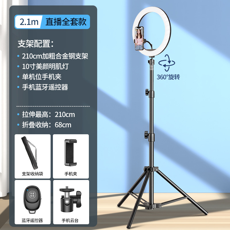 • 2.1 m [두꺼운 합금 브래킷] 싱글 위치 + 수납 백 + 10 인치 램프 + 블루투스 리모콘