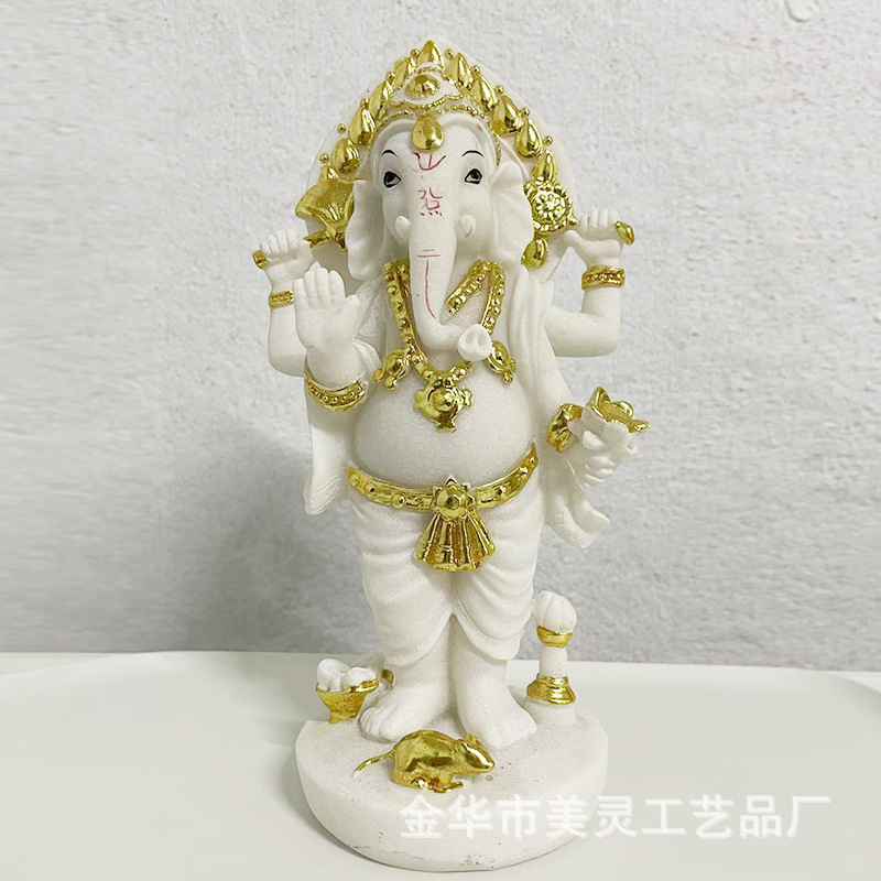 인도 불상 코끼리 트렁크 부의 신 수지 장식품 선 불상 동상 사암 조각 태국 인도 코끼리 국경 코끼리 신스토어 가기